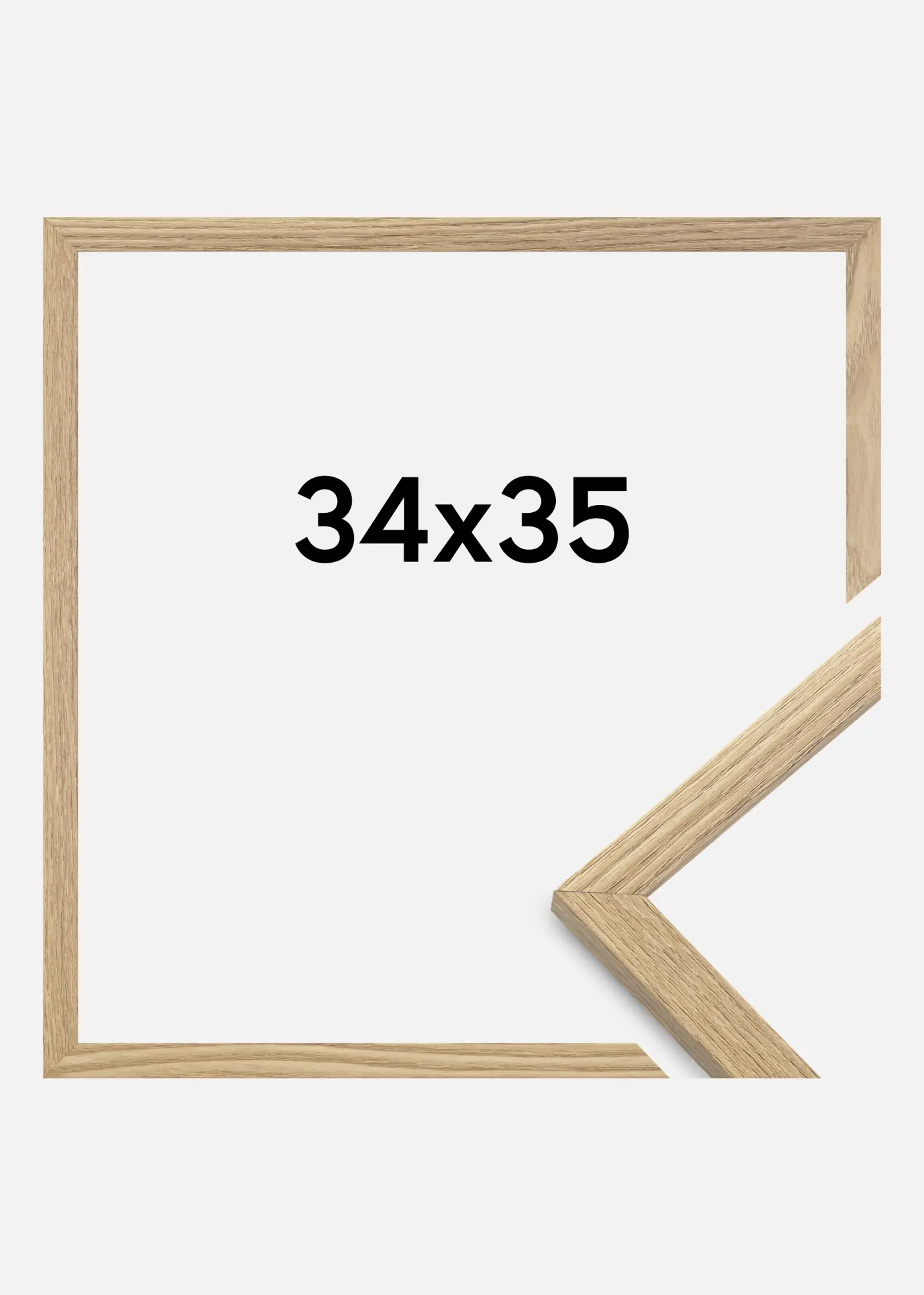 Рамката е изработена от MDF материал с фолиран повърхност в дъбов нюанс и има тънък профил на рамката от 14 мм. Има достатъчно място да допълните снимките си с луксозен паспарту, благодарение на вътрешната дълбочина на рамката (фалшдълбочина) от 12 мм.