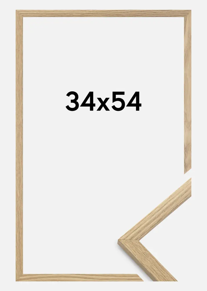 Рамката е изработена от MDF материал с фолиран повърхност в дъбов нюанс и има тънък профил на рамката от 14 мм. Има достатъчно място да допълните снимките си с луксозен паспарту, благодарение на вътрешната дълбочина на рамката (фалшдълбочина) от 12 мм.