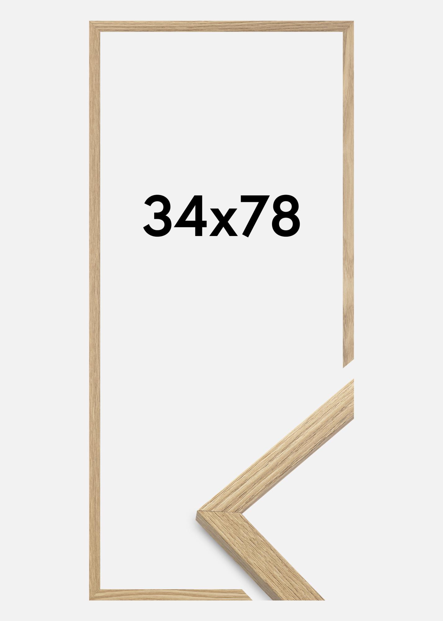 Рамката е изработена от MDF материал с фолиран повърхност в дъбов нюанс и има тънък профил на рамката от 14 мм. Има достатъчно място да допълните снимките си с луксозен паспарту, благодарение на вътрешната дълбочина на рамката (фалшдълбочина) от 12 мм.