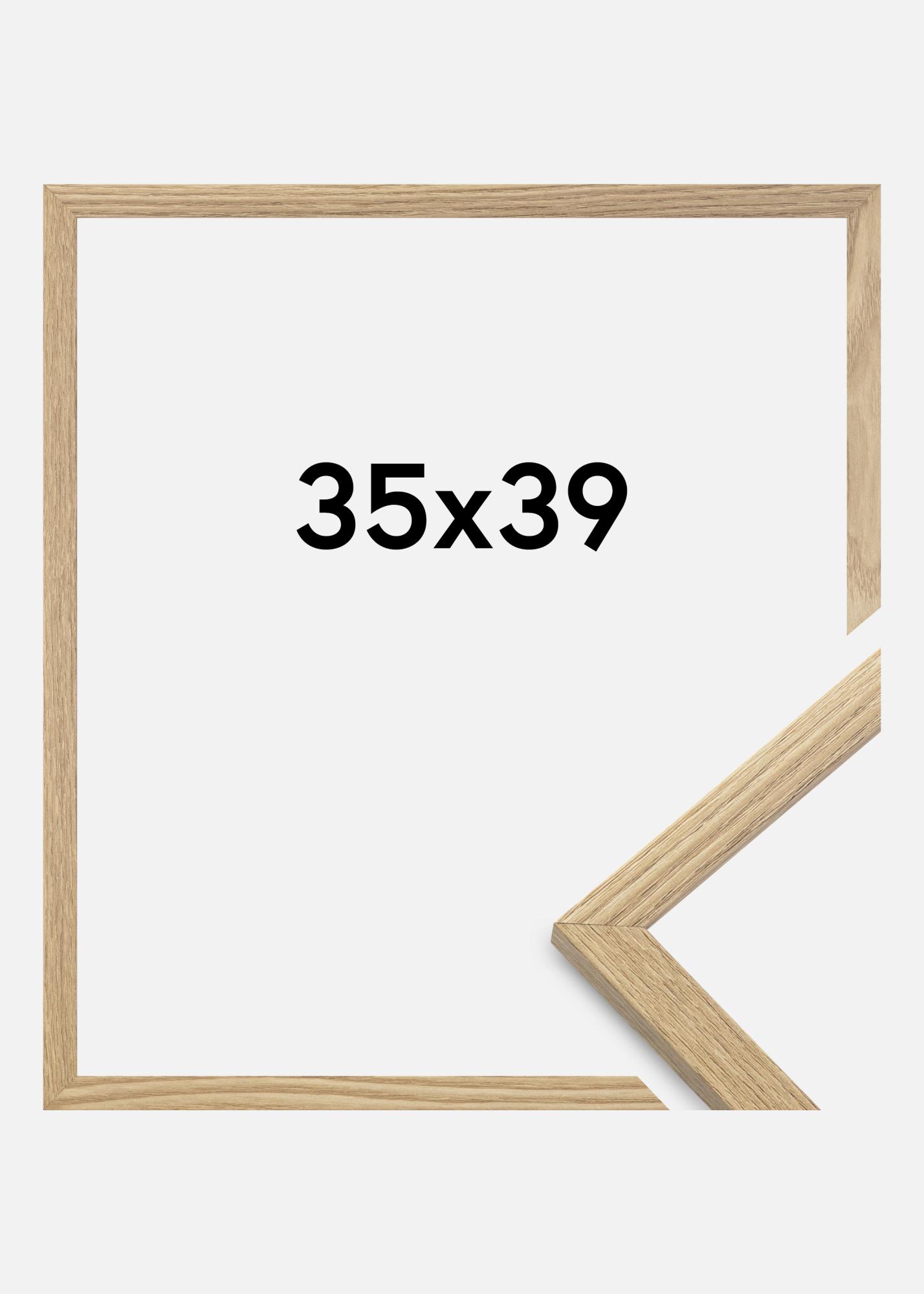 Рамката е изработена от MDF материал с фолиран повърхност в дъбов нюанс и има тънък профил на рамката от 14 мм. Има достатъчно място да допълните снимките си с луксозен паспарту, благодарение на вътрешната дълбочина на рамката (фалшдълбочина) от 12 мм.