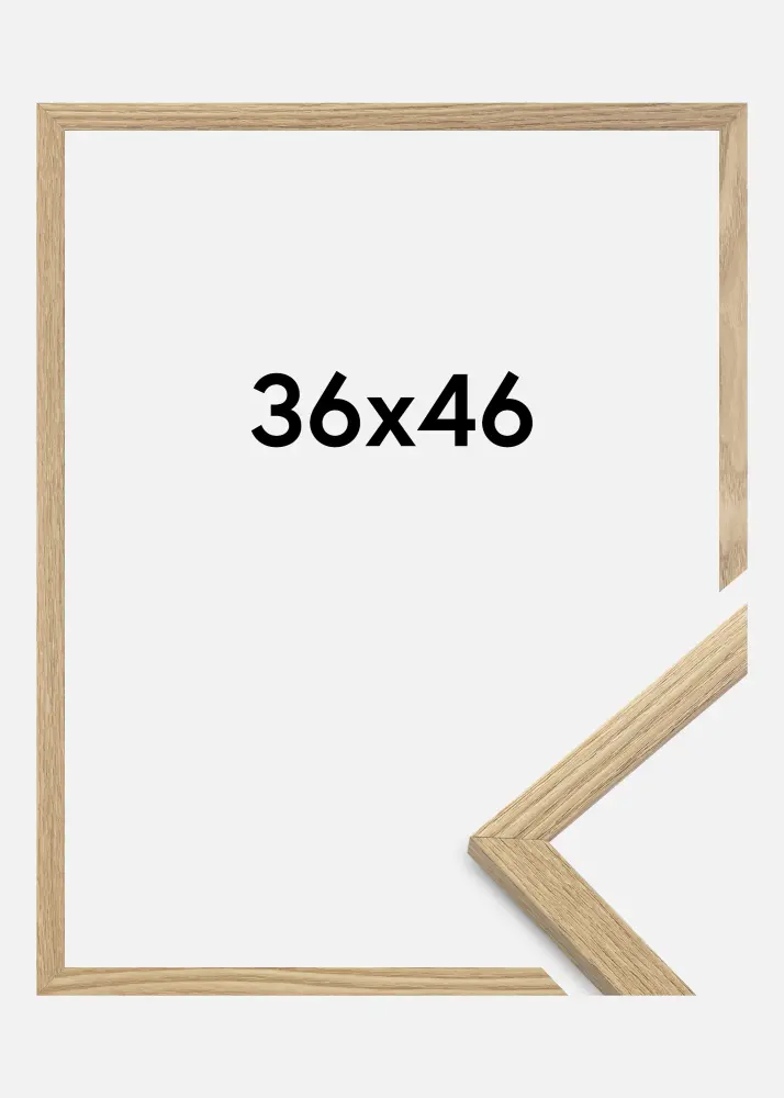 Рамката е изработена от MDF материал с фолиран повърхност в дъбов нюанс и има тънък профил на рамката от 14 мм. Има достатъчно място да допълните снимките си с луксозен паспарту, благодарение на вътрешната дълбочина на рамката (фалшдълбочина) от 12 мм.