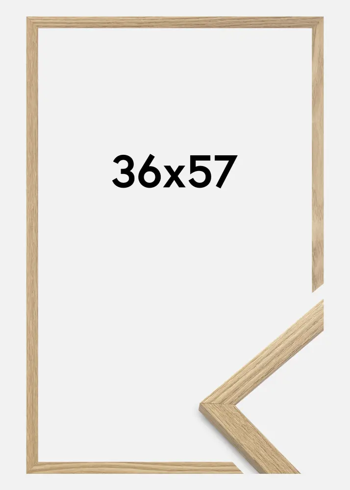 Рамката е изработена от MDF материал с фолиран повърхност в дъбов нюанс и има тънък профил на рамката от 14 мм. Има достатъчно място да допълните снимките си с луксозен паспарту, благодарение на вътрешната дълбочина на рамката (фалшдълбочина) от 12 мм.