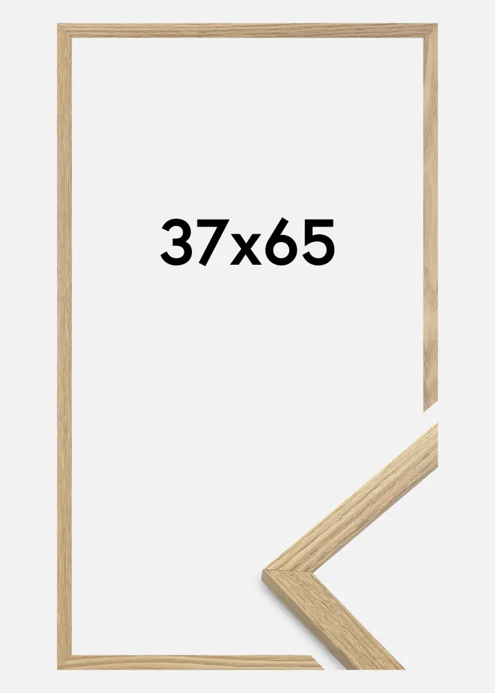 Рамката е изработена от MDF материал с фолиран повърхност в дъбов нюанс и има тънък профил на рамката от 14 мм. Има достатъчно място да допълните снимките си с луксозен паспарту, благодарение на вътрешната дълбочина на рамката (фалшдълбочина) от 12 мм.
