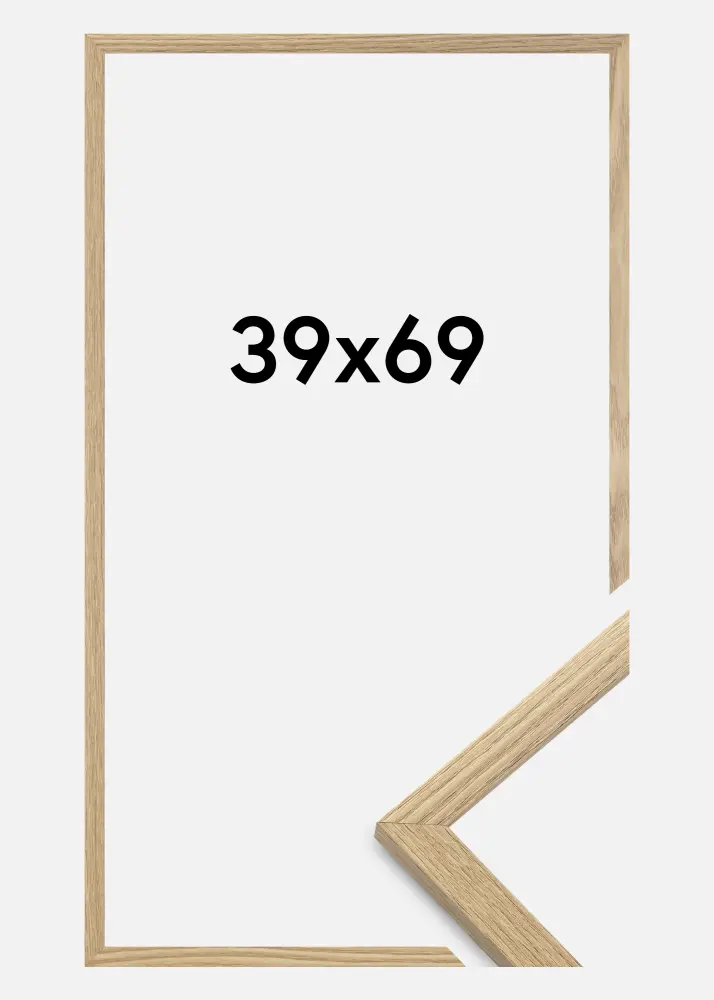 Рамката е изработена от MDF материал с фолиран повърхност в дъбов нюанс и има тънък профил на рамката от 14 мм. Има достатъчно място да допълните снимките си с луксозен паспарту, благодарение на вътрешната дълбочина на рамката (фалшдълбочина) от 12 мм.