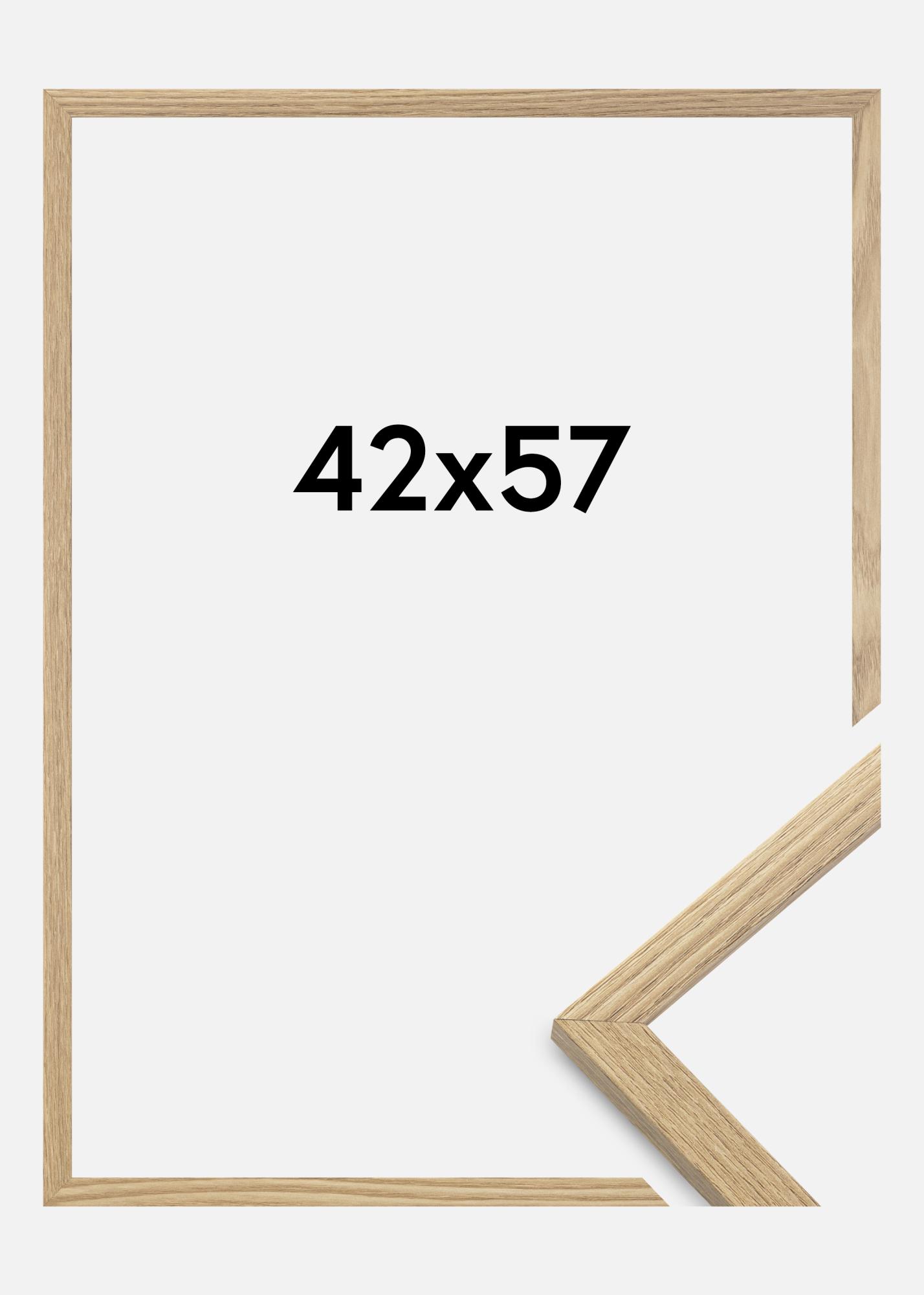 Рамката е изработена от MDF материал с фолиран повърхност в дъбов нюанс и има тънък профил на рамката от 14 мм. Има достатъчно място да допълните снимките си с луксозен паспарту, благодарение на вътрешната дълбочина на рамката (фалшдълбочина) от 12 мм.
