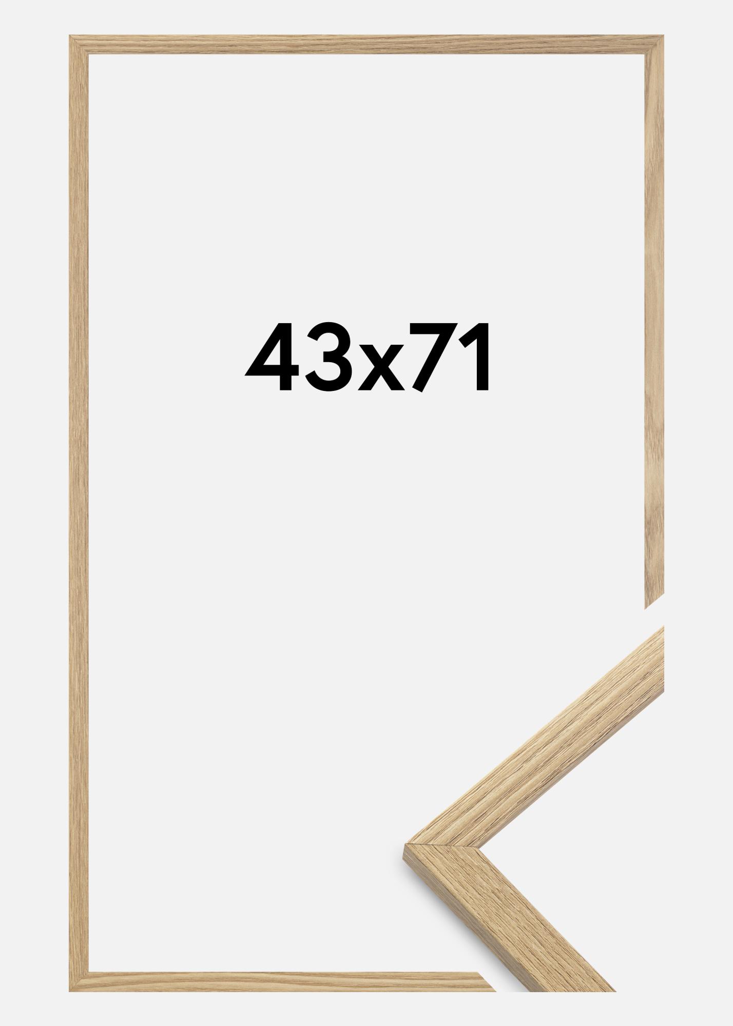 Рамката е изработена от MDF материал с фолиран повърхност в дъбов нюанс и има тънък профил на рамката от 14 мм. Има достатъчно място да допълните снимките си с луксозен паспарту, благодарение на вътрешната дълбочина на рамката (фалшдълбочина) от 12 мм.
