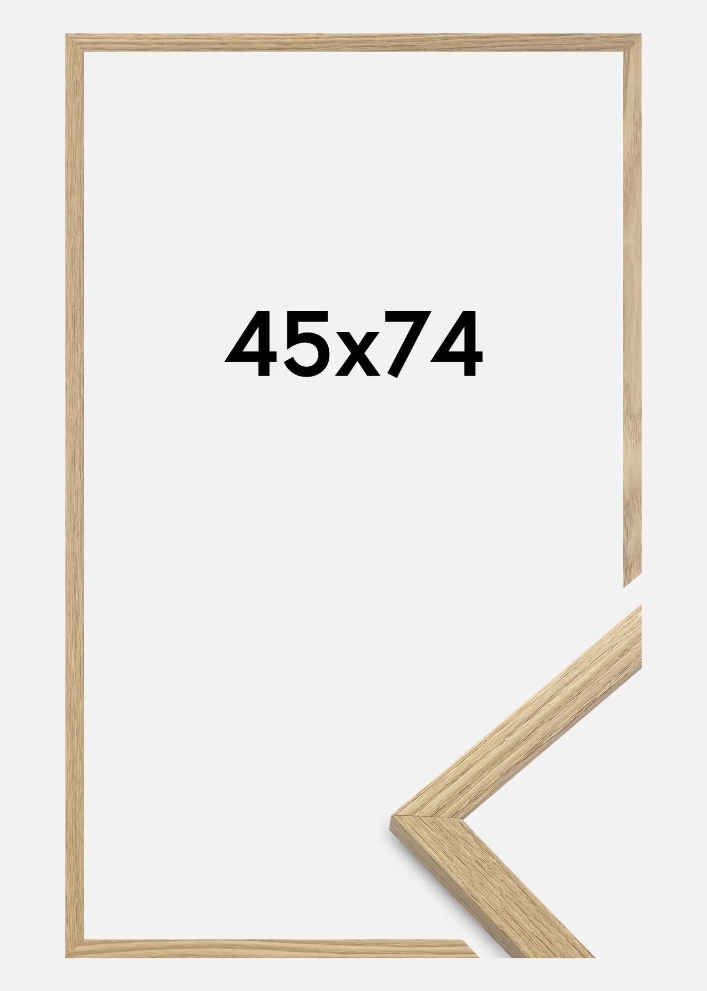 Рамката е изработена от MDF материал с фолиран повърхност в дъбов нюанс и има тънък профил на рамката от 14 мм. Има достатъчно място да допълните снимките си с луксозен паспарту, благодарение на вътрешната дълбочина на рамката (фалшдълбочина) от 12 мм.