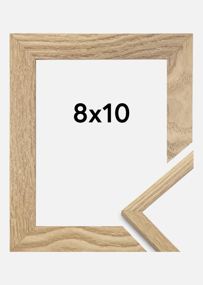 Рамката е изработена от MDF материал с фолиран повърхност в дъбов нюанс и има тънък профил на рамката от 14 мм. Има достатъчно място да допълните снимките си с луксозен паспарту, благодарение на вътрешната дълбочина на рамката (фалшдълбочина) от 12 мм.