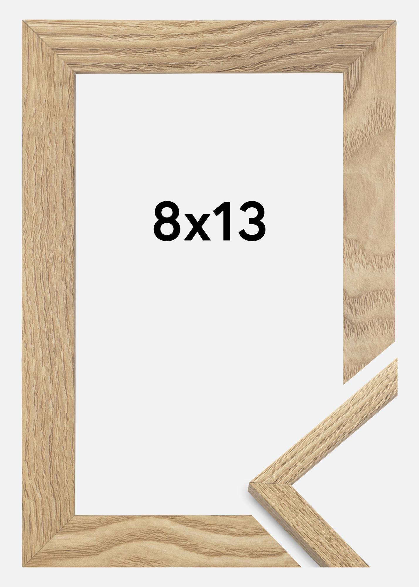 Рамката е изработена от MDF материал с фолиран повърхност в дъбов нюанс и има тънък профил на рамката от 14 мм. Има достатъчно място да допълните снимките си с луксозен паспарту, благодарение на вътрешната дълбочина на рамката (фалшдълбочина) от 12 мм.