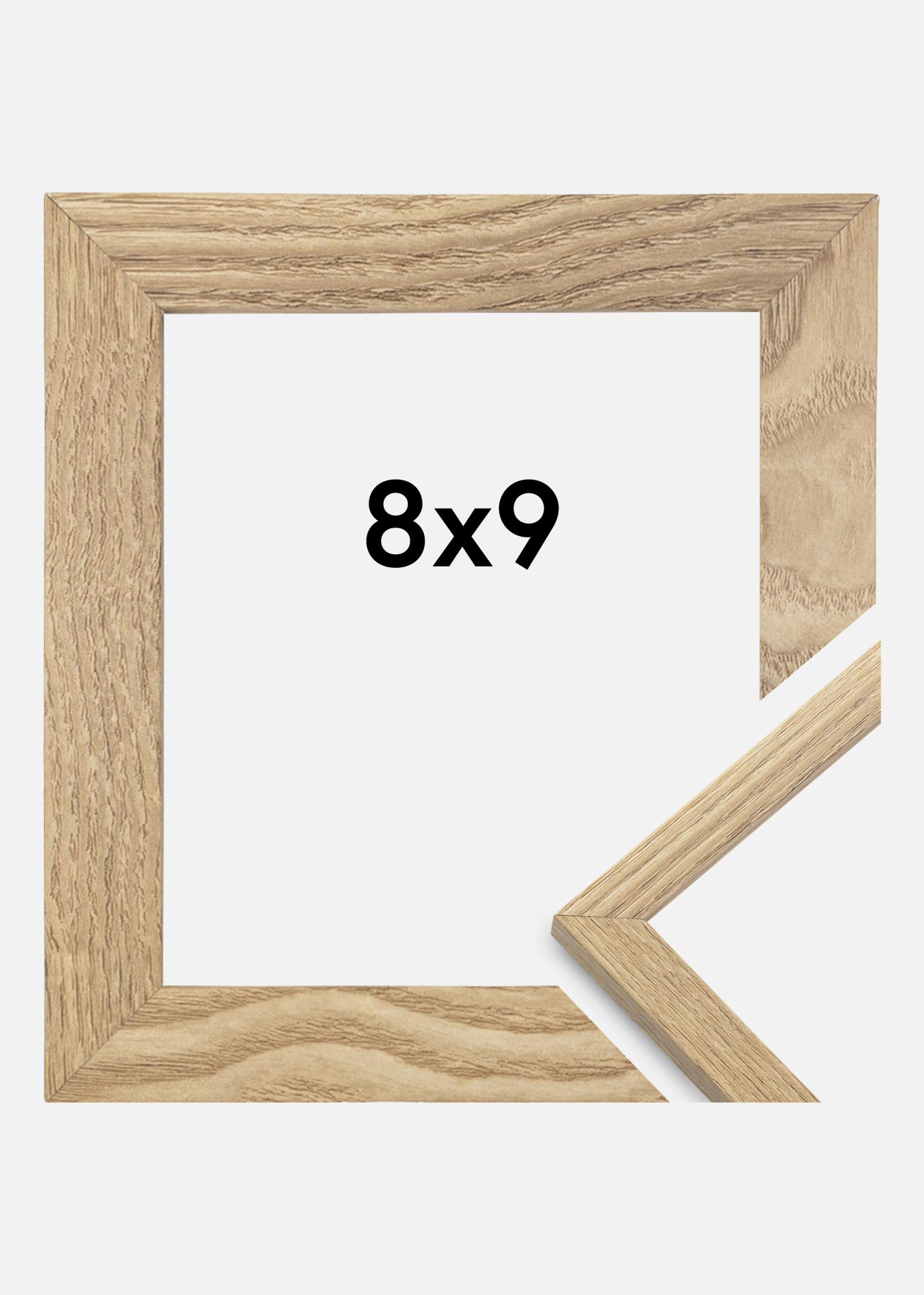 Рамката е изработена от MDF материал с фолиран повърхност в дъбов нюанс и има тънък профил на рамката от 14 мм. Има достатъчно място да допълните снимките си с луксозен паспарту, благодарение на вътрешната дълбочина на рамката (фалшдълбочина) от 12 мм.