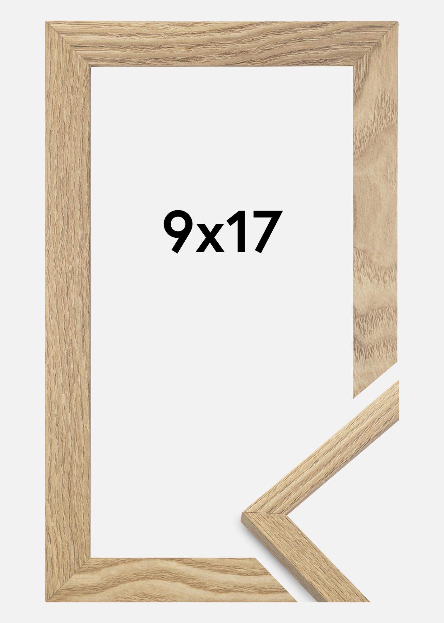 Рамката е изработена от MDF материал с фолиран повърхност в дъбов нюанс и има тънък профил на рамката от 14 мм. Има достатъчно място да допълните снимките си с луксозен паспарту, благодарение на вътрешната дълбочина на рамката (фалшдълбочина) от 12 мм.
