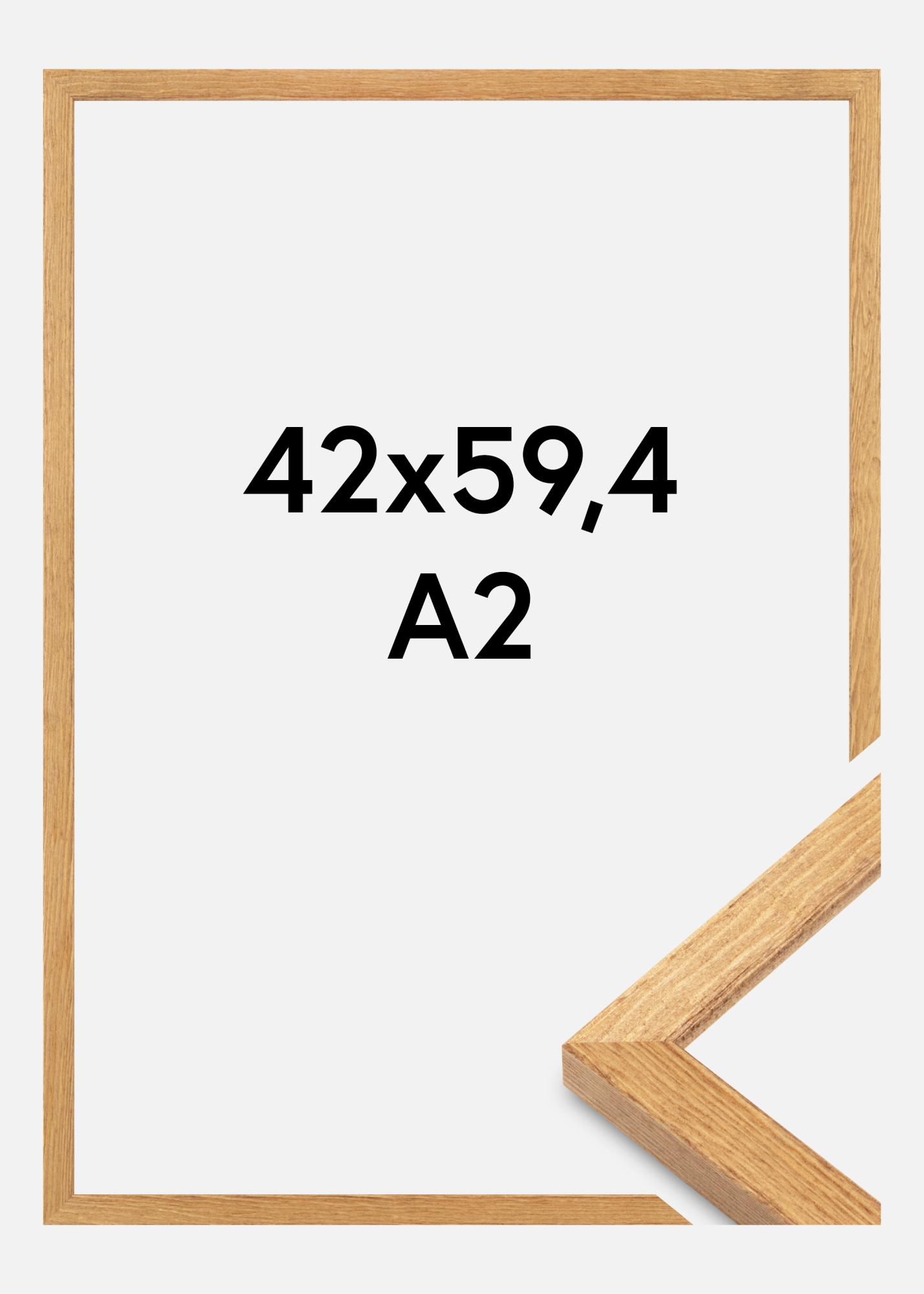 Тази стилна фоторамка от бор в цвят дъб е перфектна комбинация от елегантност и функционалност. Със своя топъл и естествен тон тя придава вечен вид на вашия интериор, независимо дали предпочитате модерен или класически стил. Рамката е проектирана да пасва на мотиви с размер 42x59,4 см (A2), което я прави идеална за подчертаване на вашите любими фотографии, постери или произведения на изкуството.