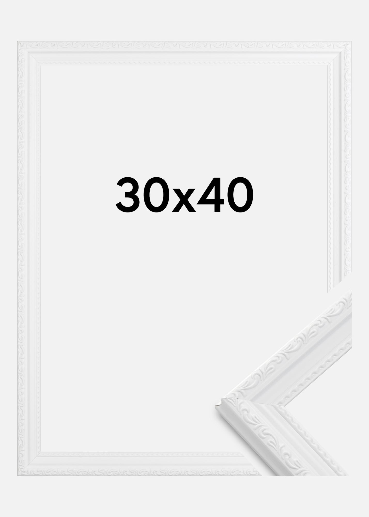 Стартирайте избора на рамка »Abisko Бял е елегантна фоторамка в ретро стил с красиви орнаменти. Подхожда много добре, когато търсите бяла рамка в старинен стил.