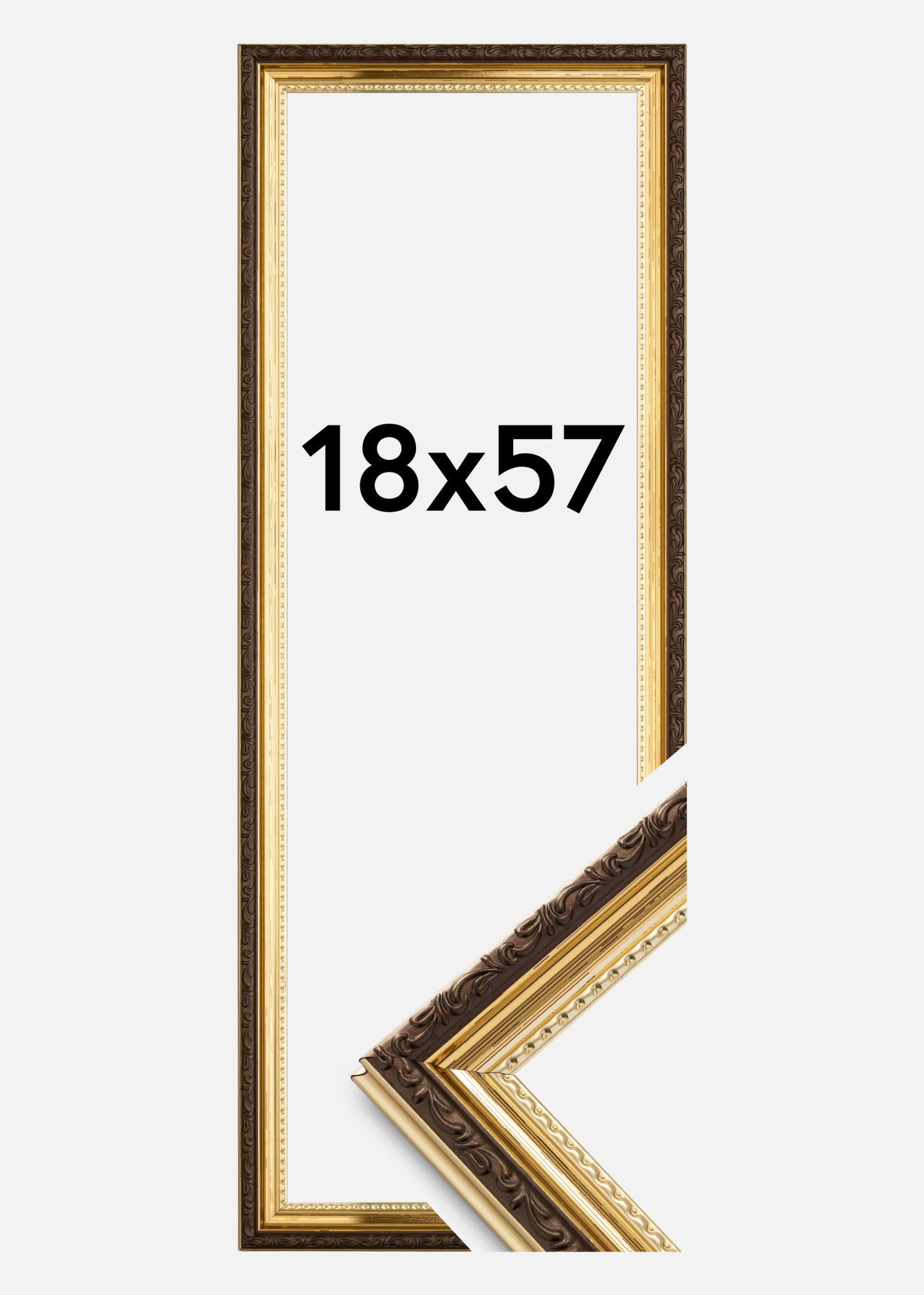 Търсите ли красиво декорирана рамка в старинен стил? Abisko Акрилно стъкло Злато е здрава златна рамка с невероятно стилни орнаменти. Лентата на рамката е 25 мм широка и има лъскав златен цвят с украсена кафява бордюра в средата. Дори и златната част е украсена, с вълнообразен модел близо до стъклото.