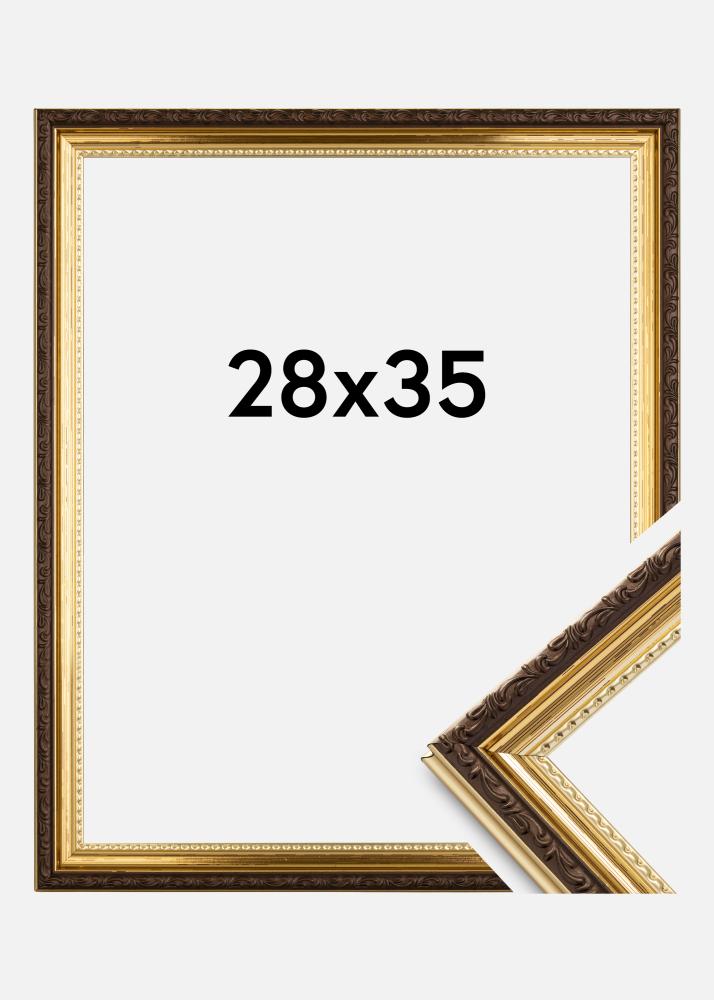Търсите ли красиво декорирана рамка в старинен стил? Abisko Акрилно стъкло Злато е здрава златна рамка с невероятно стилни орнаменти. Рамката е с ширина 25 мм и е с бляскав златист цвят с украсена кафява периферия в средата. Златната част също е украсена, с вълнообразен мотив близо до стъклото.