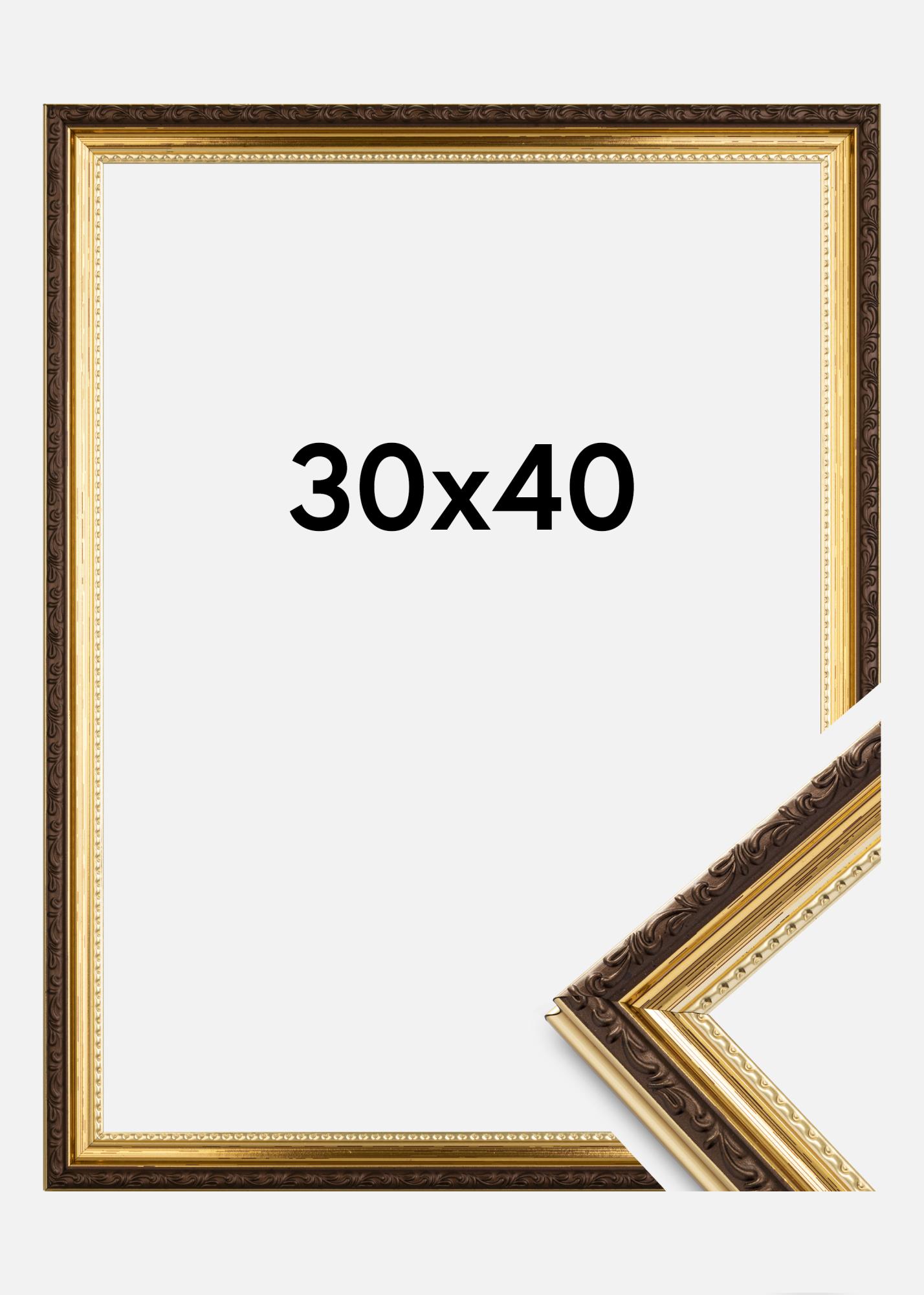 Търсите красиво декорирана рамка в стар стил? Абиско Акрилно стъкло Злато е солидна златна рамка с невероятно стилни орнаменти. Листът на рамката е с ширина 25 мм и има блестящ златист цвят с украсена кафява бордюра в средата. Дори и златната част е украсена, с вълнообразен мотив най-близо до стъклото.