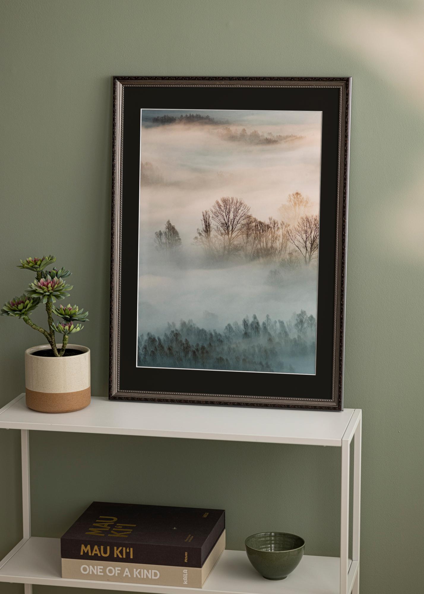 Черният цвят на паспартуто допълва изображението и привлича погледа на зрителя към мотива, като същевременно предпазва произведението на изкуството от допир със стъклото. Рамката има матово покритие, което придава изтънченост на интериора ви. Освен това тя е снабдена с включените метални закачалки на гърба, което улеснява окачването на вашата снимка както хоризонтално, така и вертикално.