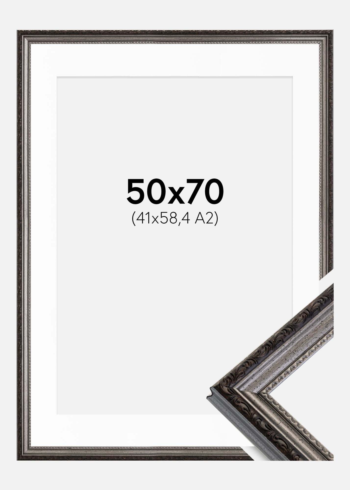 Рамка Abisko Сребро 50x70 cm - Паспарту бяло 42x59,4 cm (A2)
