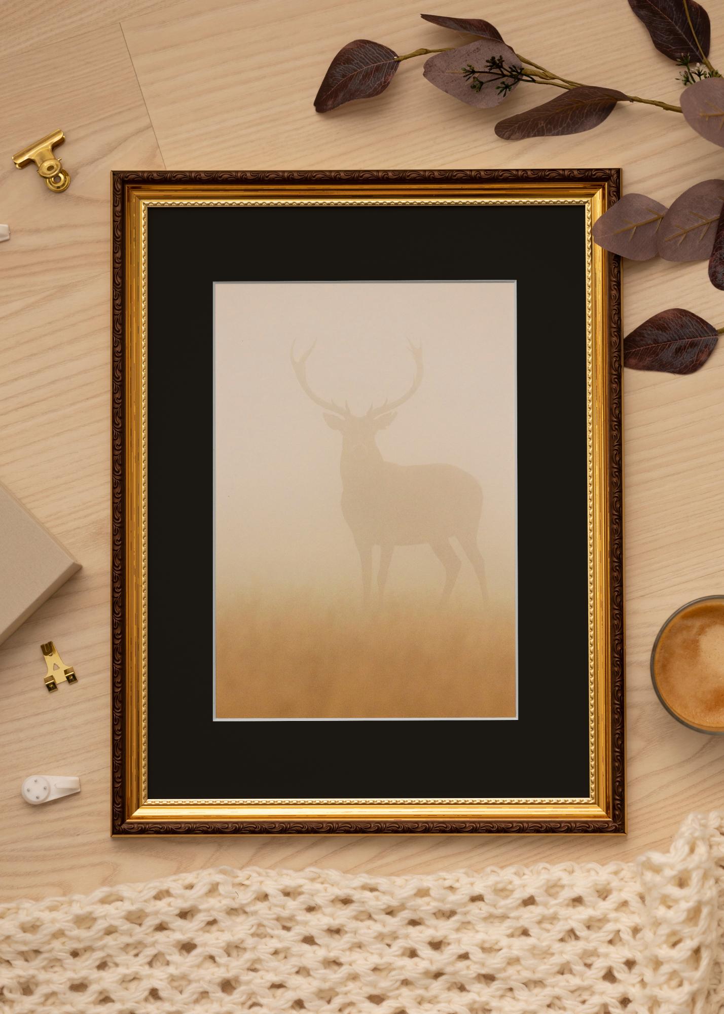 Подобрете своето изкуство и придайте допълнително измерение на вашите снимки с нашата елегантна златна рамка с черно паспарту. Тази изискана рамка е перфектна за подчертаване на снимки във формат A3 (29,7x42 см) и придава луксозно докосване на вашия дом или офис. Ширината на рамката е 25 мм, а дълбочината 20 мм, осигурява стабилна и отличителна рамка, докато блестящият златен финиш създава богата контраст с черното паспарту.