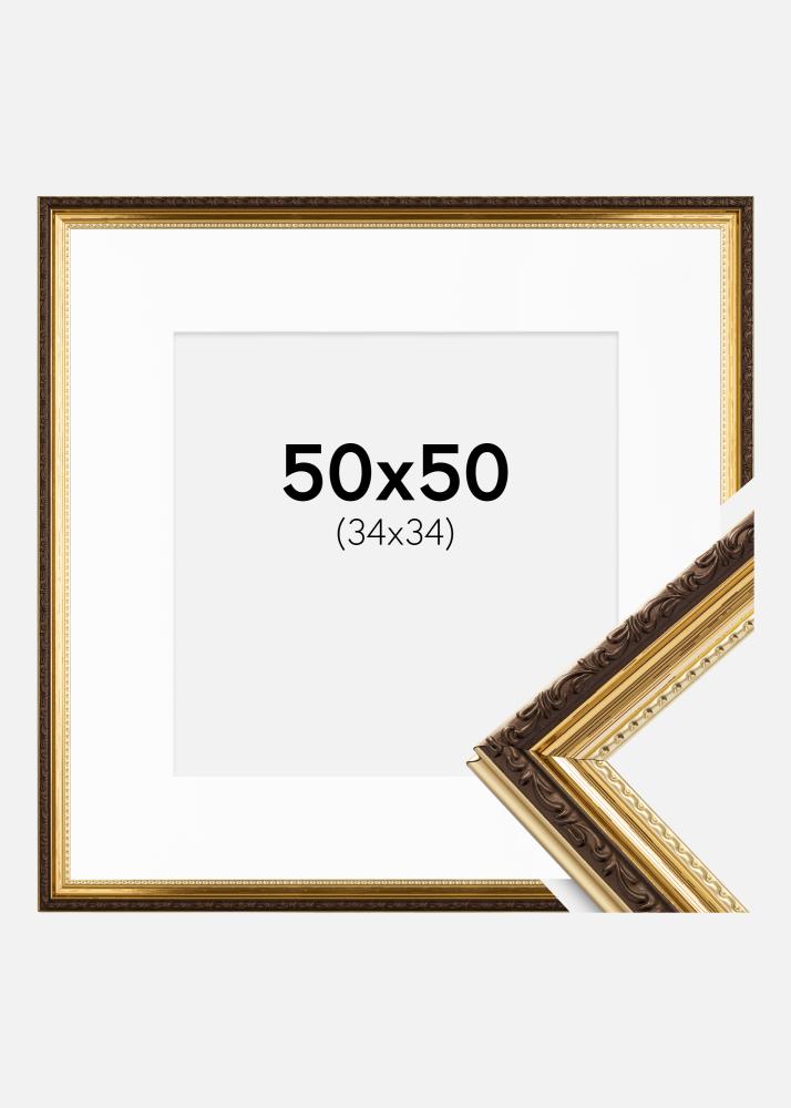 Рамка Abisko Златно 50x50 cm - Паспарту бяло 35x35 cm