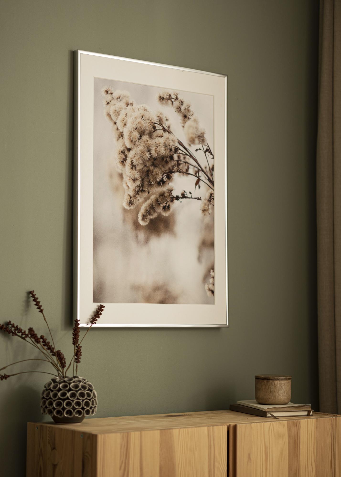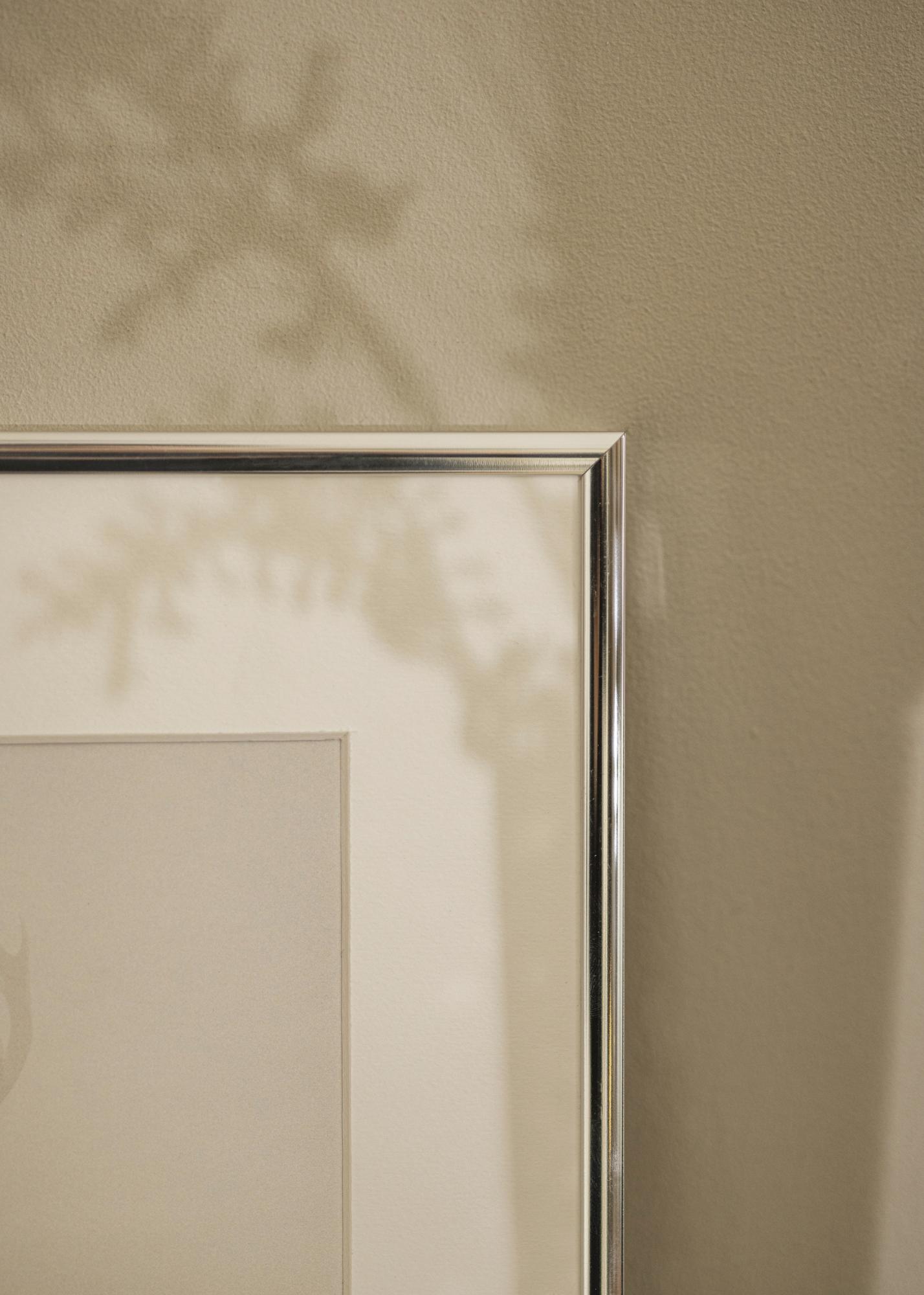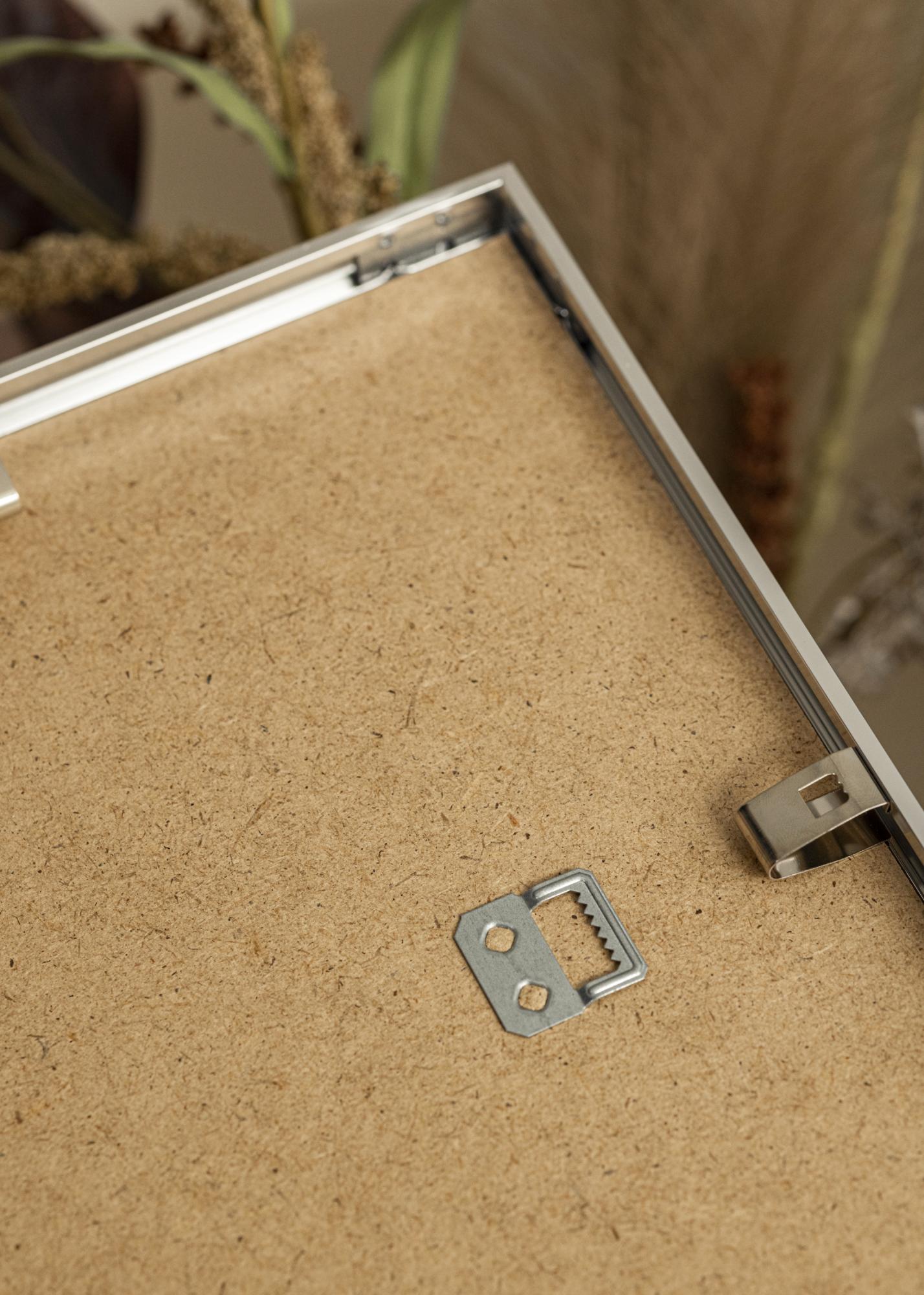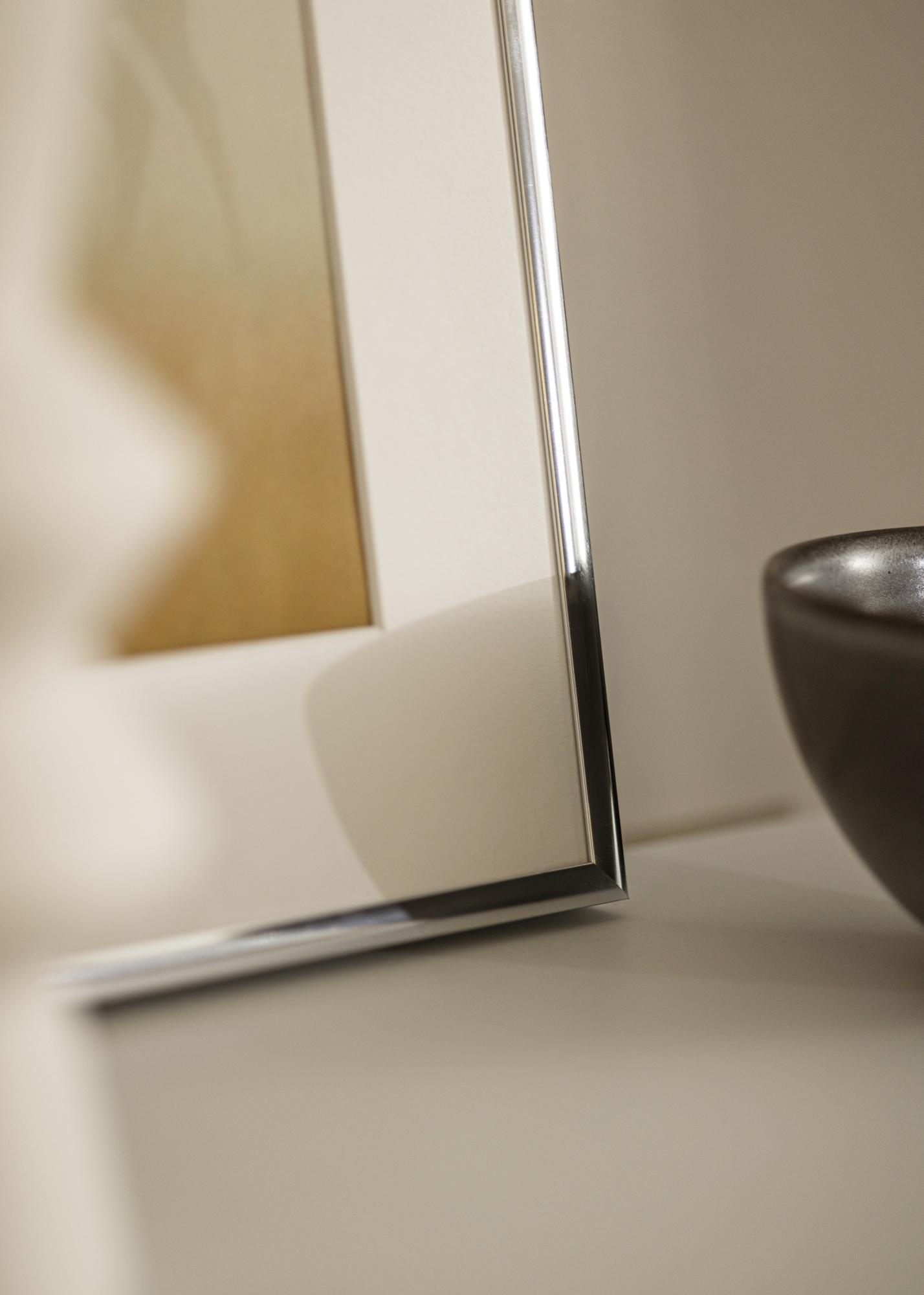Това е здрава алуминиева рамка в модерен сребрист нюанс. Тесният кант, с ширина само 9 мм, осигурява красива обрамка, която не отнема фокуса от вашите мотиви. Лъскавото покритие подчертава модния вид на рамката. За да монтирате вашите мотиви в рамката, освободете задната част, която се държи на място от малки метални клипсове, и след това поставете вашите снимки до стъклото на рамката.