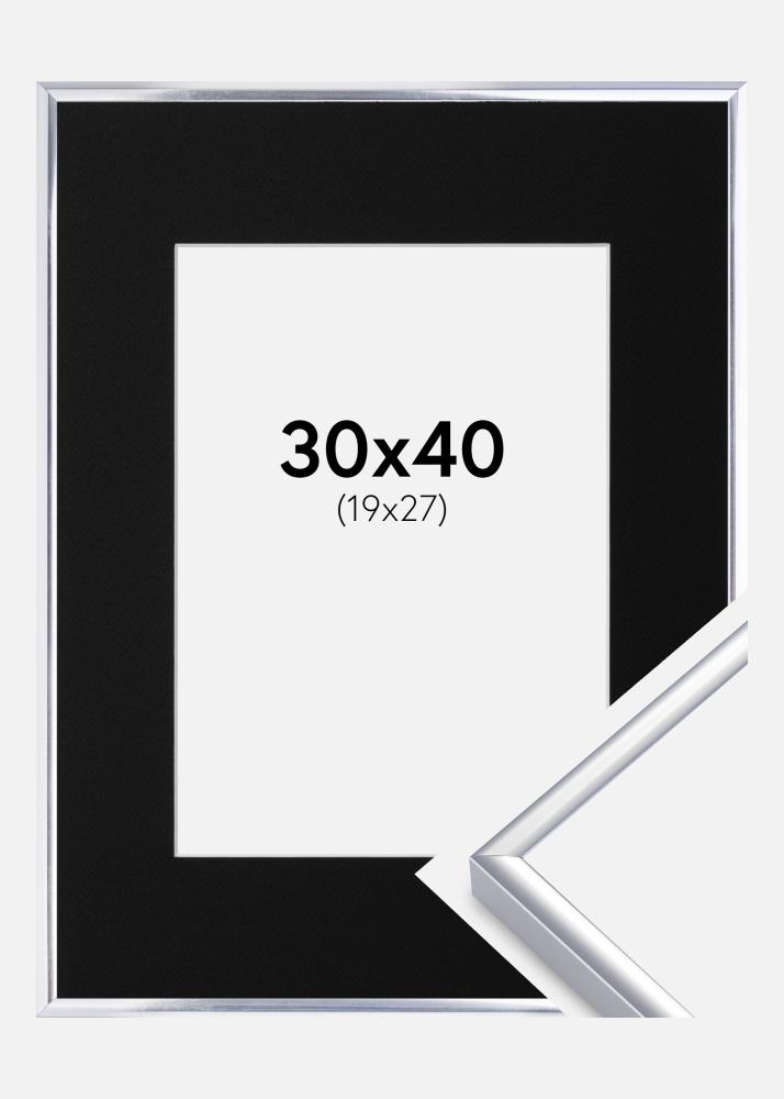 Рамка Алуминий Гланцово сребро 30x40 cm - Паспарту Черно 20x28 cm