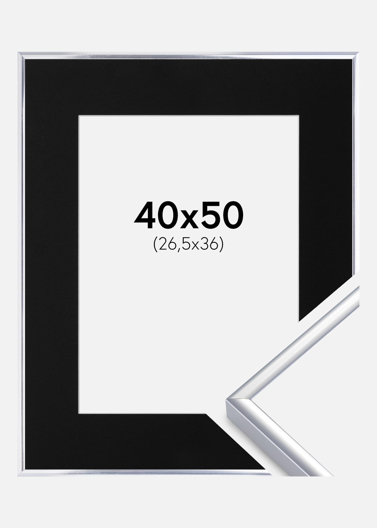 Рамка Алуминий Гланцово сребро 40x50 cm - Паспарту Черно 27,5x37 cm