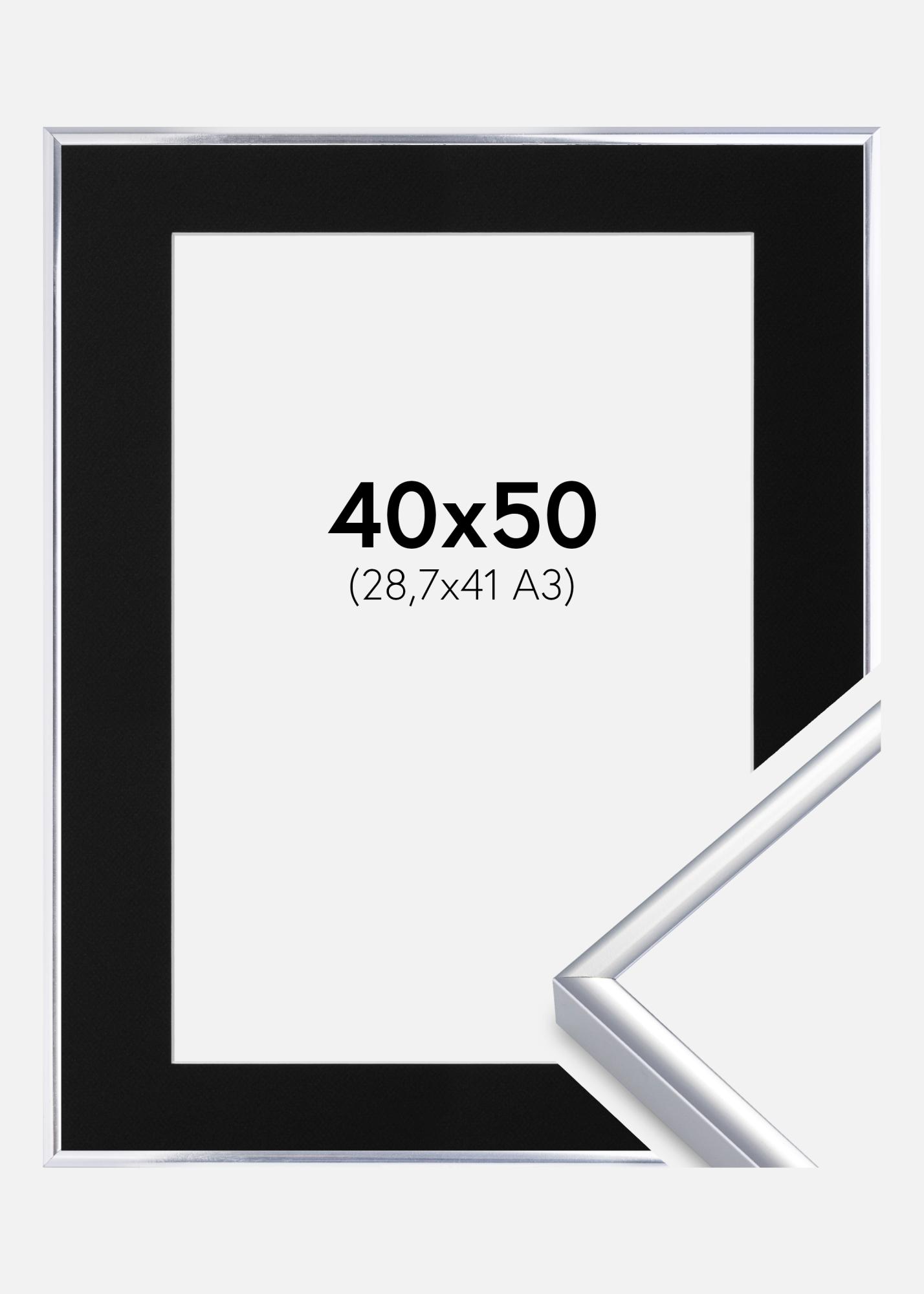 Рамка Алуминий Гланцово сребро 40x50 cm - Паспарту Черно 29,7x42 cm (A3)