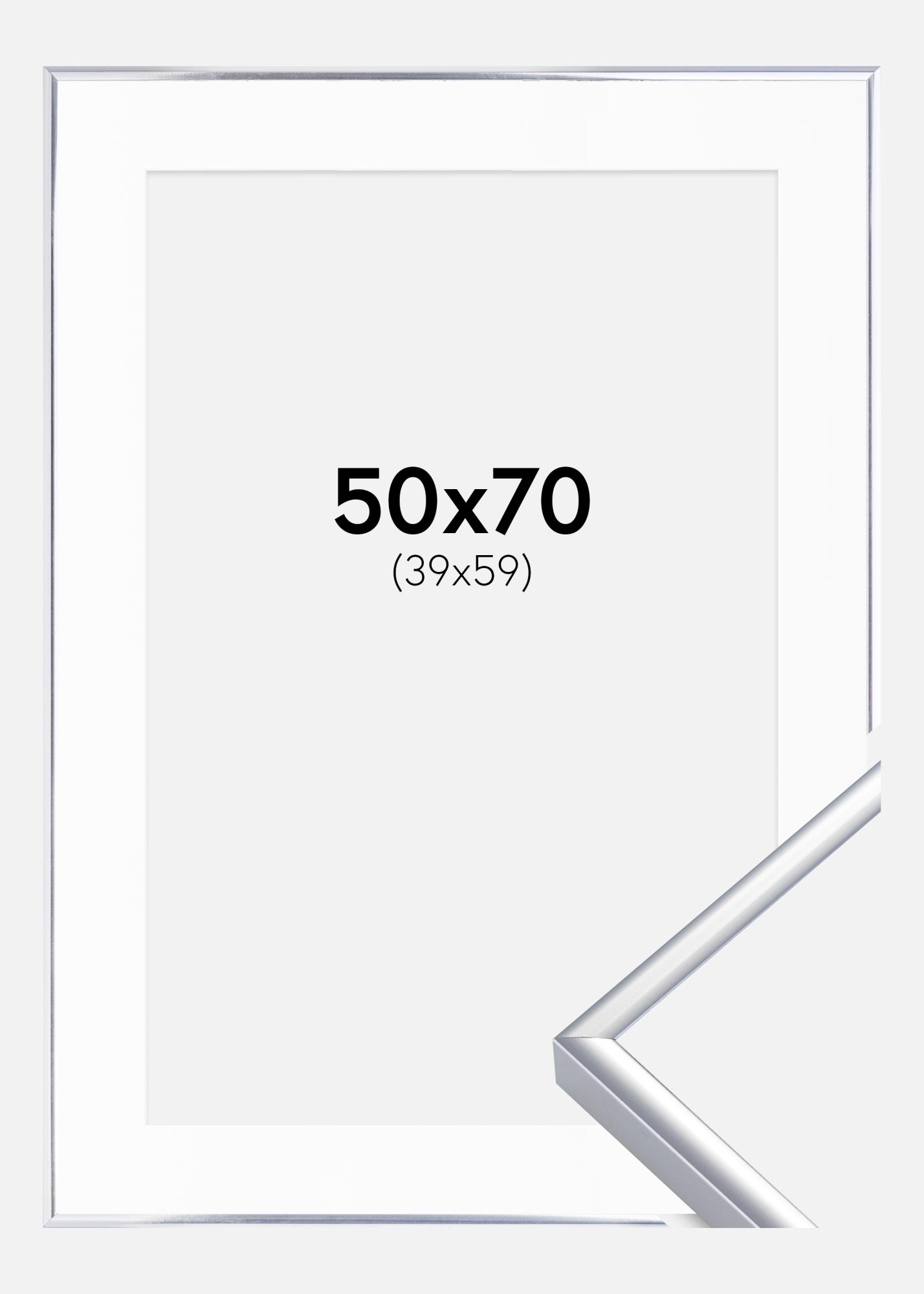 Рамка Алуминий Гланцово сребро 50x70 cm - Паспарту бяло 40x60 cm