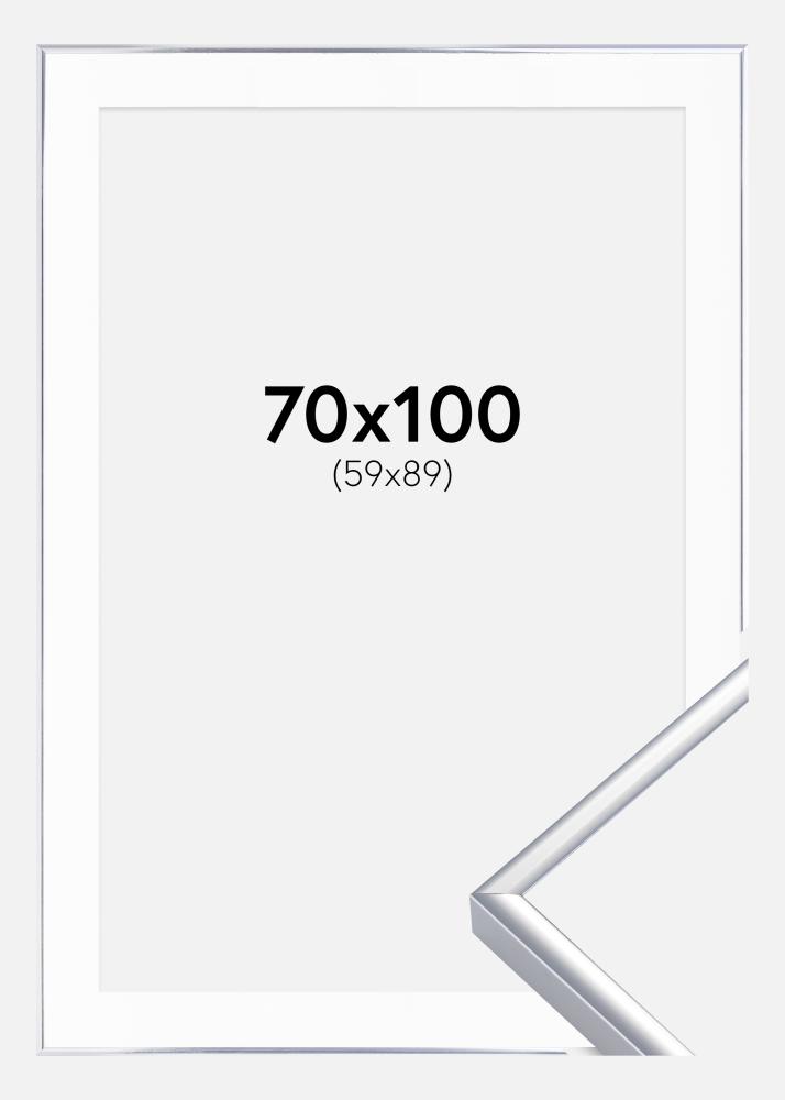 Рамка Алуминий Гланцово сребро 70x100 cm - Паспарту бяло 60x90 cm