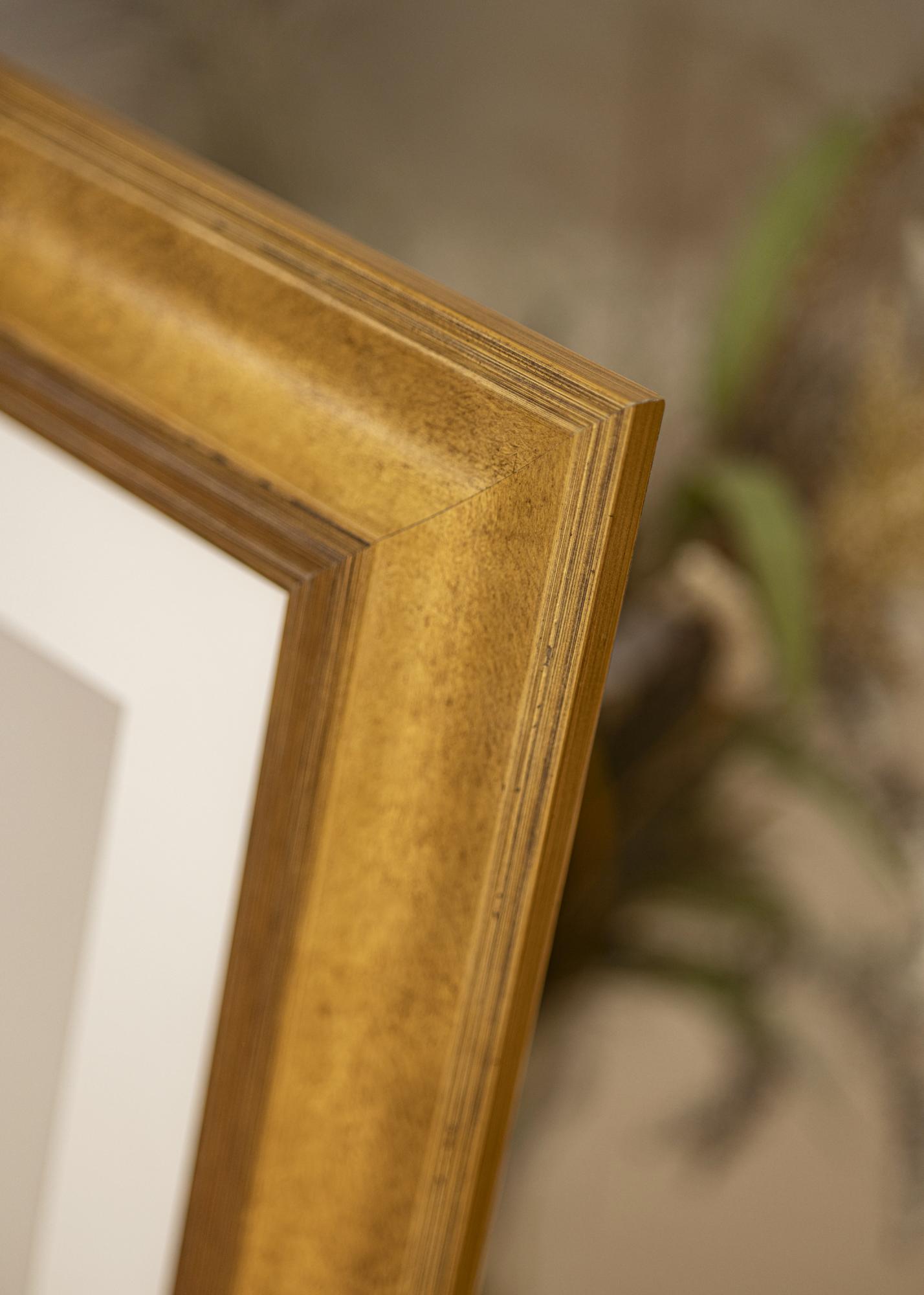 Рамката е изработена от бор и има тънки линии по краищата, които добавят софистицирана детайлност. Топлият златен тон придава вечна елегантност, която пасва перфектно както в модерни, така и в традиционни интериори. Тъй като всяка рамка за картини се изработва по поръчка в собственото ни ателие за рамки, можете да бъдете сигурни, че ще получите продукт, който е направен по вашите специфични нужди.