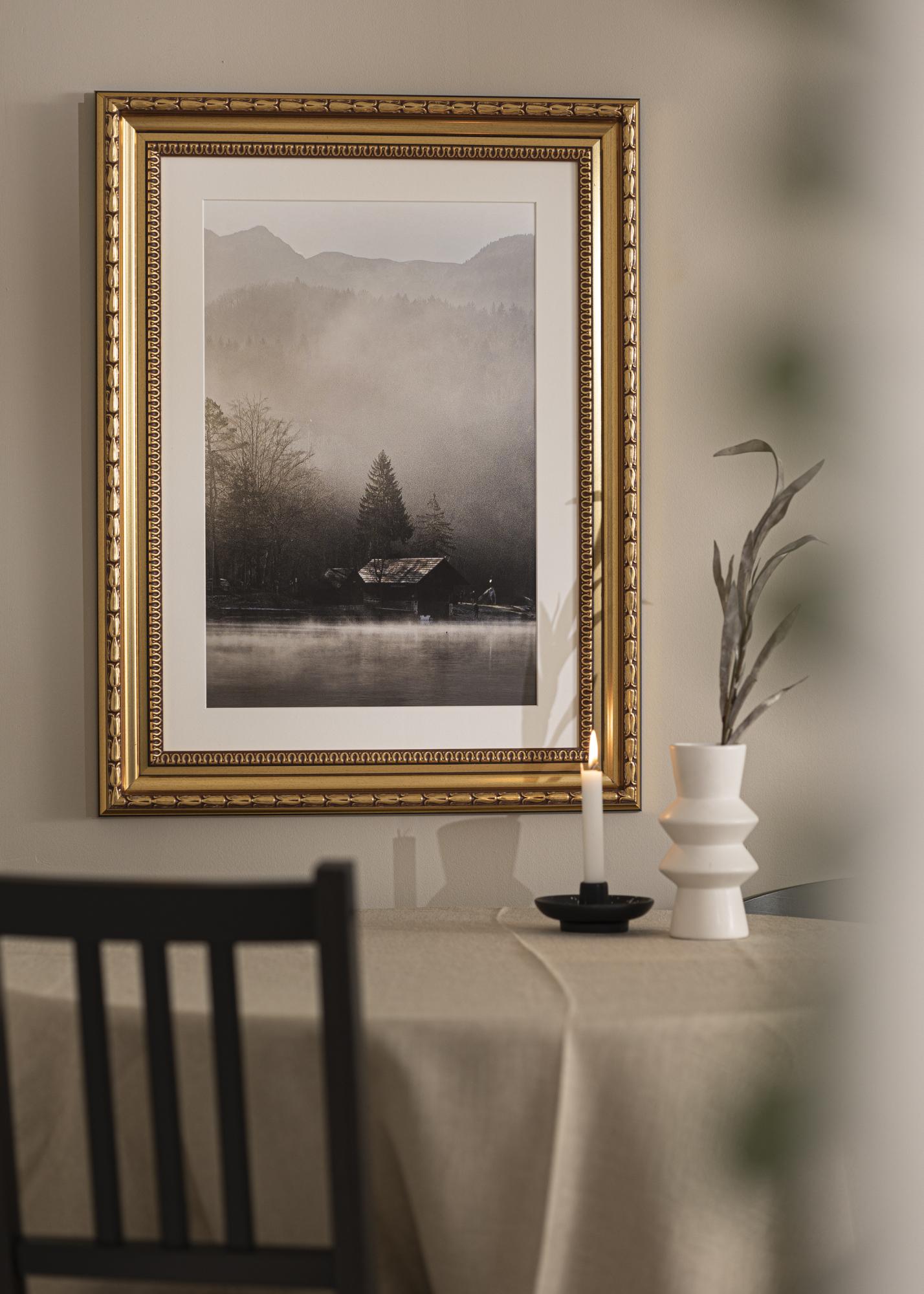 Бирка е златна рамка, на която човек с удоволствие се спира за по-дълго. Със своя широк профил и красиви украси, това е рамка, която пасва, когато търсите нещо наистина зрелищно. Рамката се изработва в нашата собствена рамкова работилница, което ни дава възможността да обещаем качество извън обичайното!