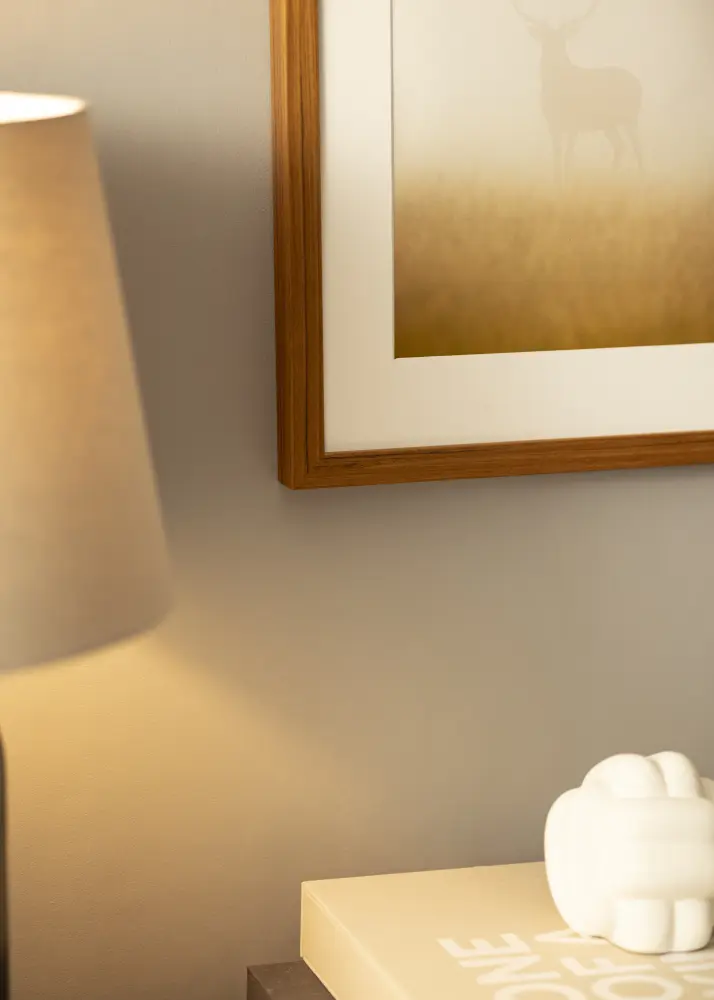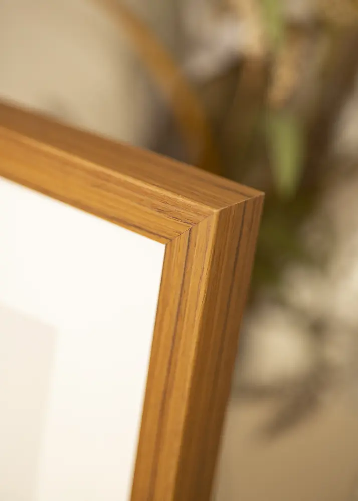 Създайте чудесно ретро усещане за вашите снимки, когато използвате тази красива рамка от тиково дърво! Рамката е в елегантен модел, който се вписва чудесно в най-различни интериори. Изработва се според вашите желания от опитен персонал с дългогодишен опит в нашата собствена рамкаджийница. Разбира се, задната част е безкиселинна, така че можете да бъдете сигурни, че вашата снимка ще остане красива в продължение на много години. Поставете я заедно с бюро, шкаф или друга мебел от тиково дърво за наистина стилна комбинация!