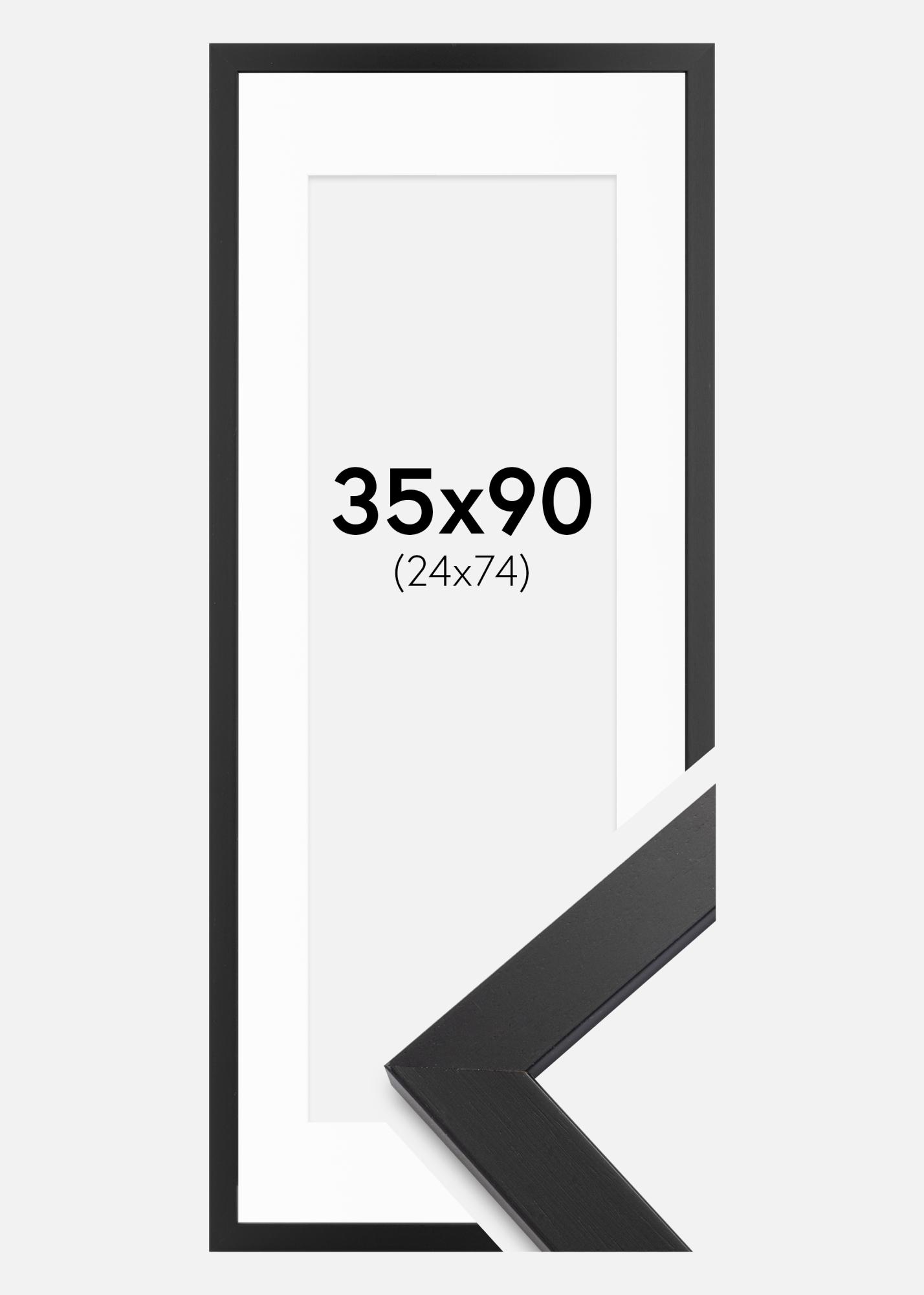 Рамка Черно дърво 35x90 cm - Паспарту Бяло 25x75 cm