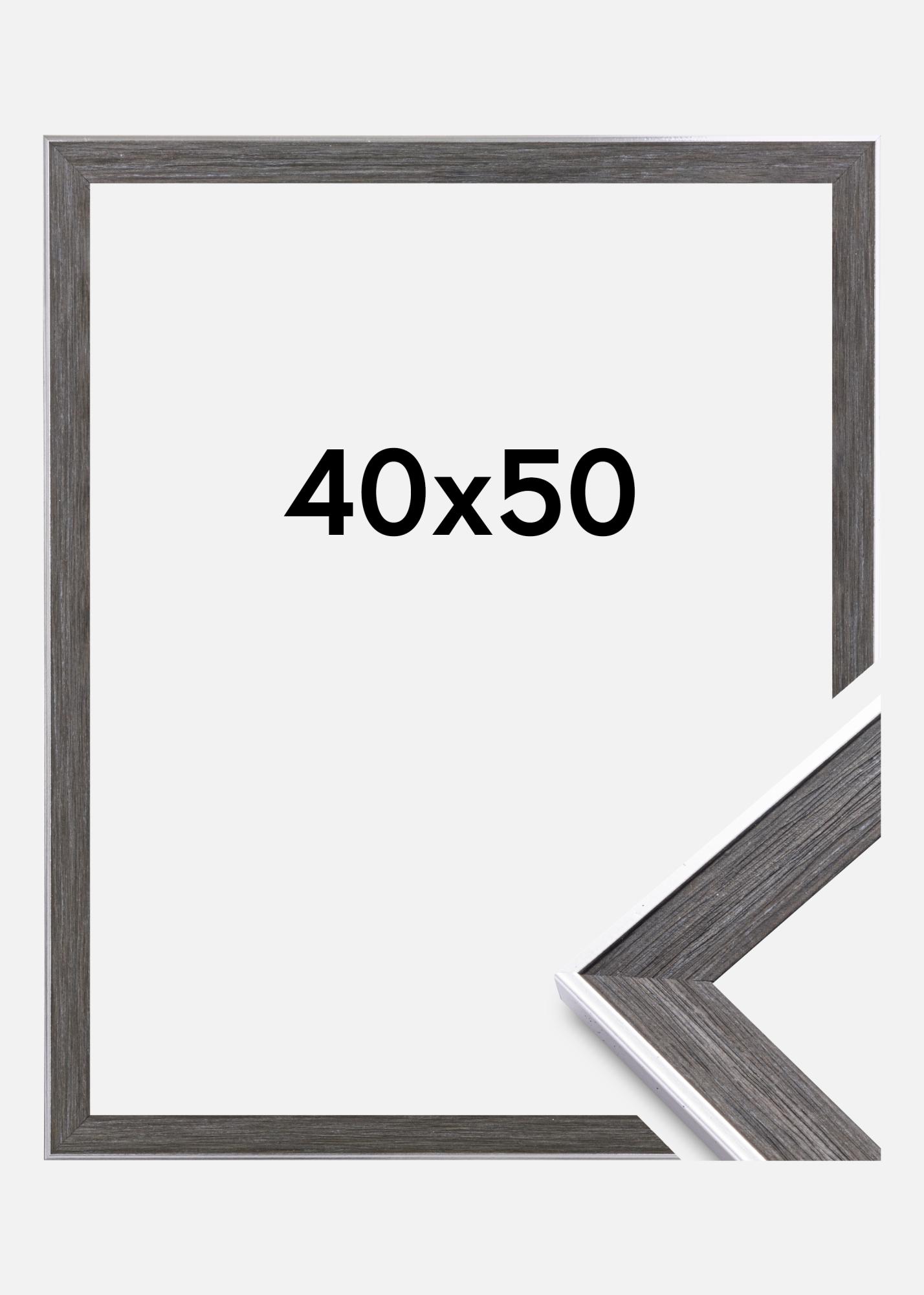Дайте на стените си модерен нюанс с тази стилна сива рамка с размери 40x50 см. Нейният уникален дизайн, със сребрист кант, който преминава в изтънчен сив нюанс близо до мотива, създава динамичен и впечатляващ ефект. Тази рамка за картини не е просто рамка за вашите снимки, а и произведение на изкуството само по себе си.