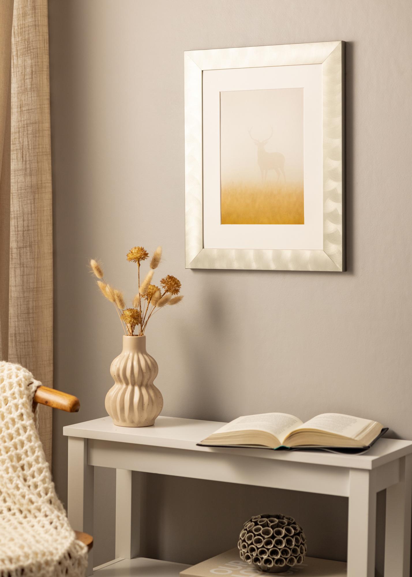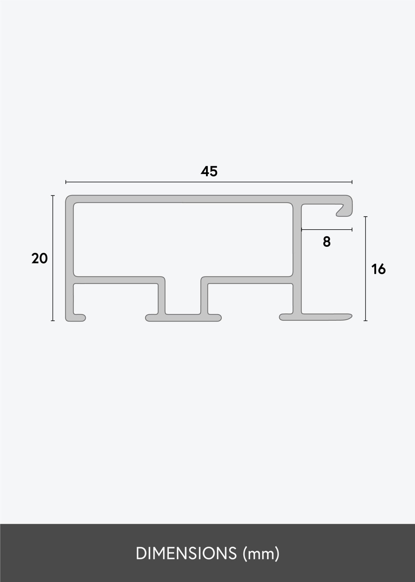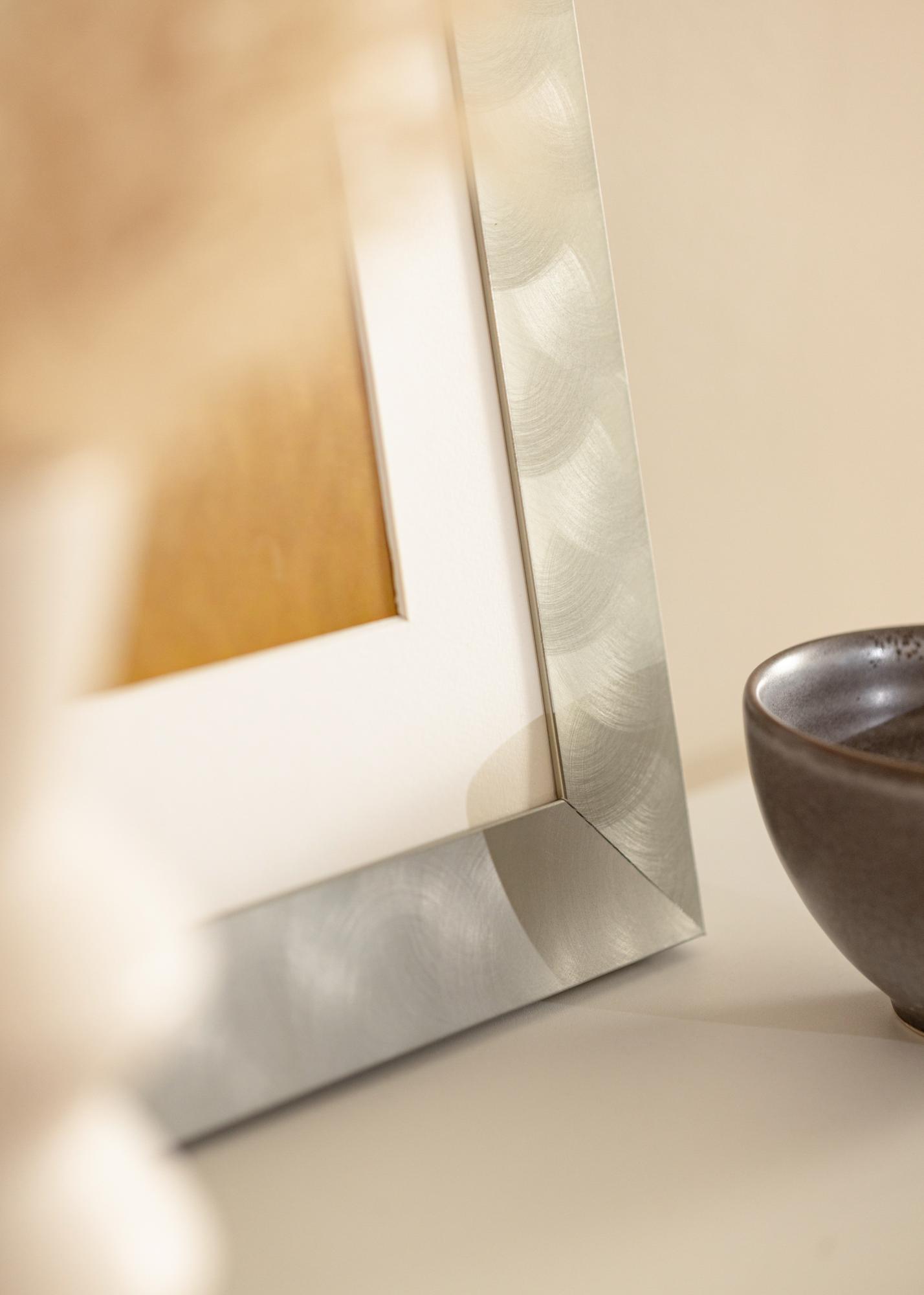 Широка рамка, изработена от алуминий с високо качество, с визия на светла стомана, която със своя чист дизайн се вписва добре както в минималистичен, така и в по-разнообразен интериорен стил. Рамката за снимки е подходяща за рамкиране на черно-бели фотографии, постери с цитати и графични отпечатъци. Закачете картината заедно с други съответстващи мотиви или комбинирайте рамки с много различни размери, за да създадете цяла стена с картини в хола и получите различен акцент от телевизора.