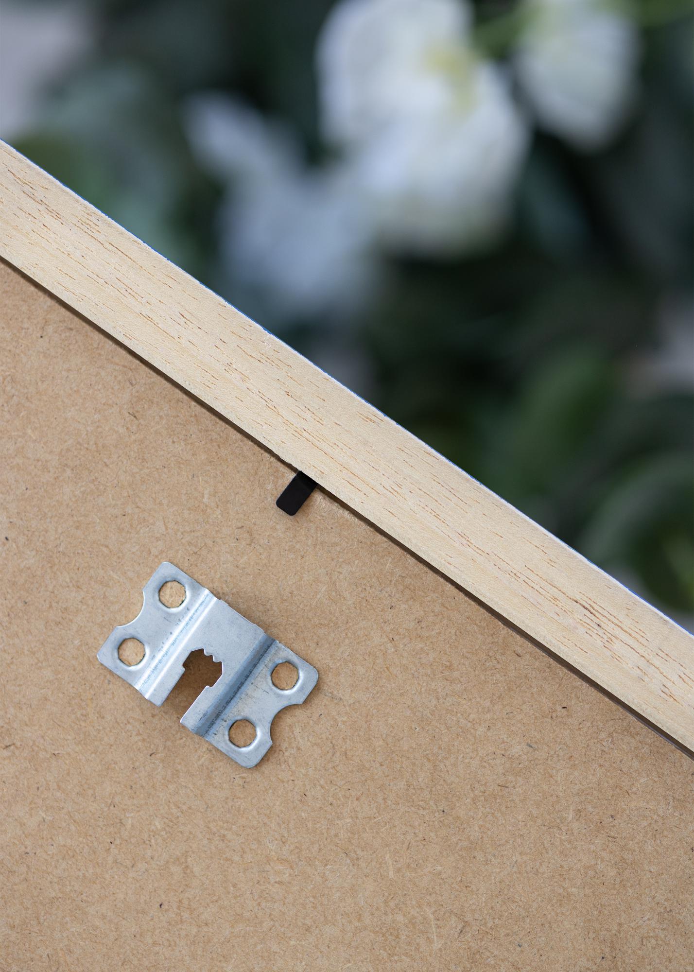 Мекият син тон на Рамката подчертава естествената дървесна структура, създавайки хармоничен баланс между цвят и материал. Гладката повърхност и прецизните ъгли допринасят за изчистеното излъчване, което пасва отлично както в модерни, така и в скандинавски домове. Рамката е оборудвана с метални закачалки на гърба, което улеснява окачването ѝ както хоризонтално, така и вертикално.