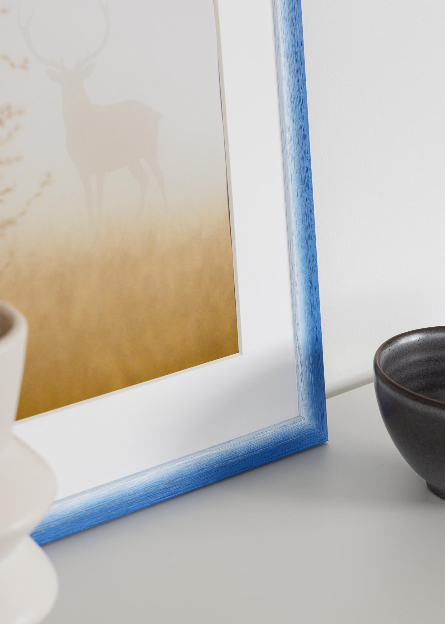 Тази синя Рамка за картини е идеална, за да подчертаете любимите си мотиви с размер 40x50 cm. С профил на Рамката с ширина 23 mm и дълбочина 13 mm, тя предлага стабилно и елегантно обрамчване. Изработена от дърво, тази фоторамка има матово покритие, което придава модерен и стилен вид.
