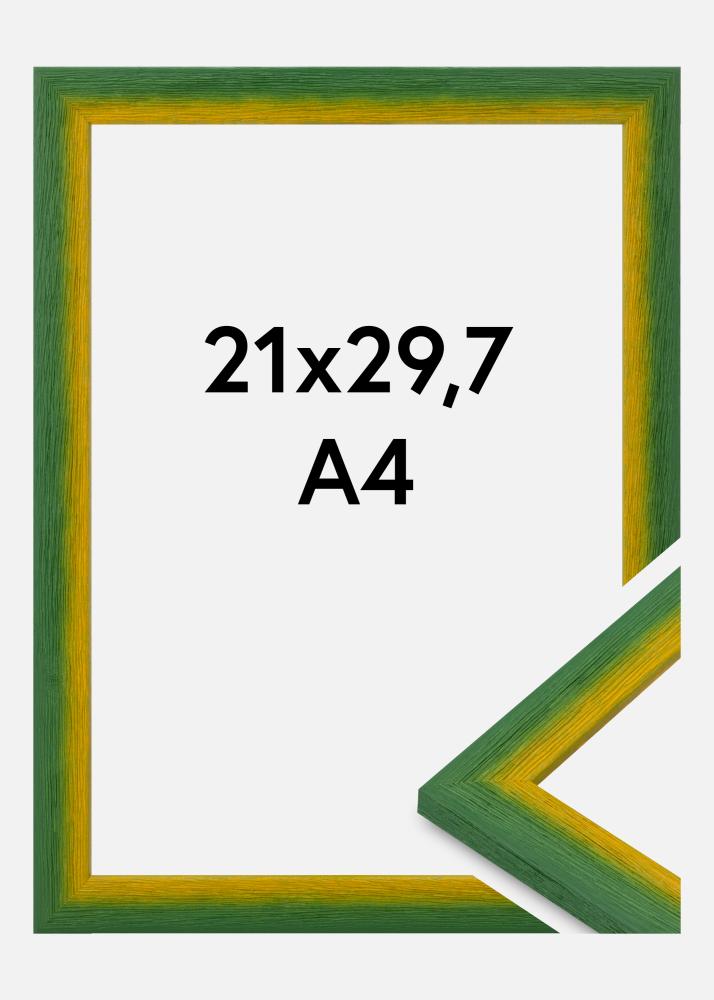 Тази Рамка за снимки с размер 21x29.7 cm (A4) е перфектна комбинация от модерен дизайн и естествена красота. Със своя зелен цвят и златистожълти тонове тя подчертава естествената структура на дървото по елегантен начин. Тесният профил, с рамкова лайсна от 23 mm и дълбочина 13 mm, придава стилен и изчистен вид, който позволява на вашия мотив да бъде в центъра на вниманието.