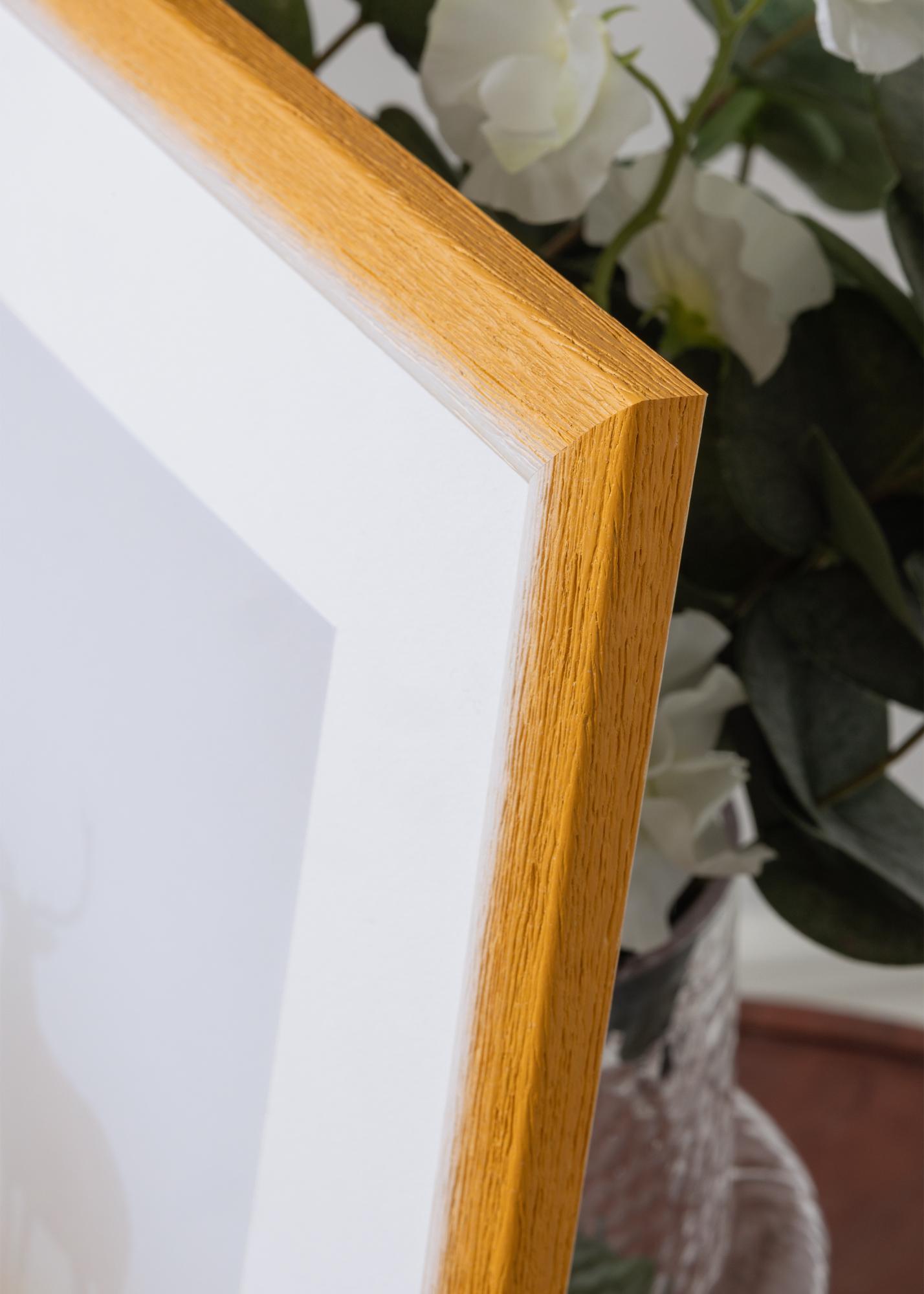 Тази фоторамка с размер 30x45 cm е перфектна комбинация от модерен дизайн и класическа елегантност. С топлия си жълт тон и гладка повърхност тя подчертава естествената дървесна структура по фин начин. Тесният профил с рамка от 23 mm придава стилен и изчистен вид, който позволява на мотива ти да бъде в центъра на вниманието.