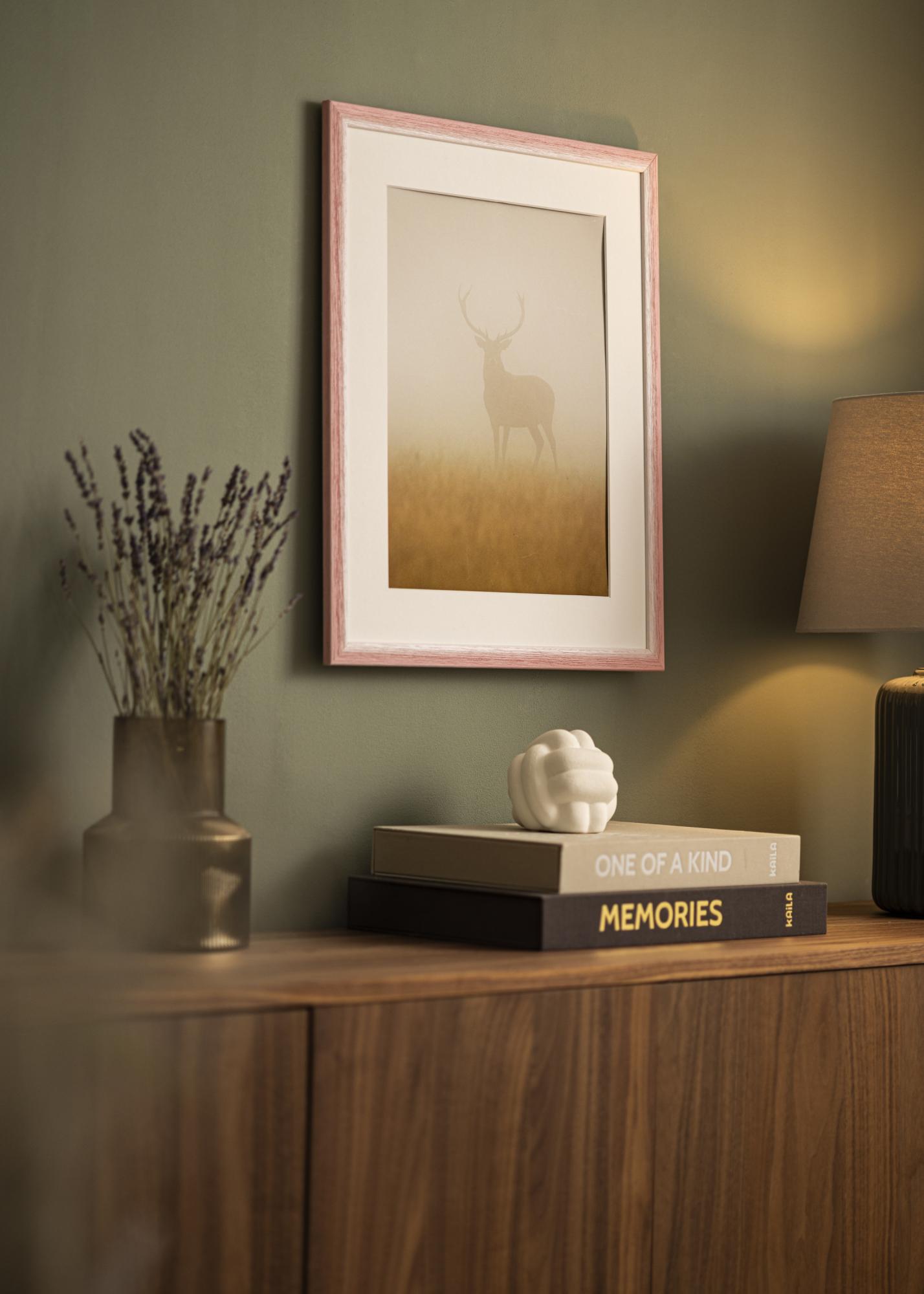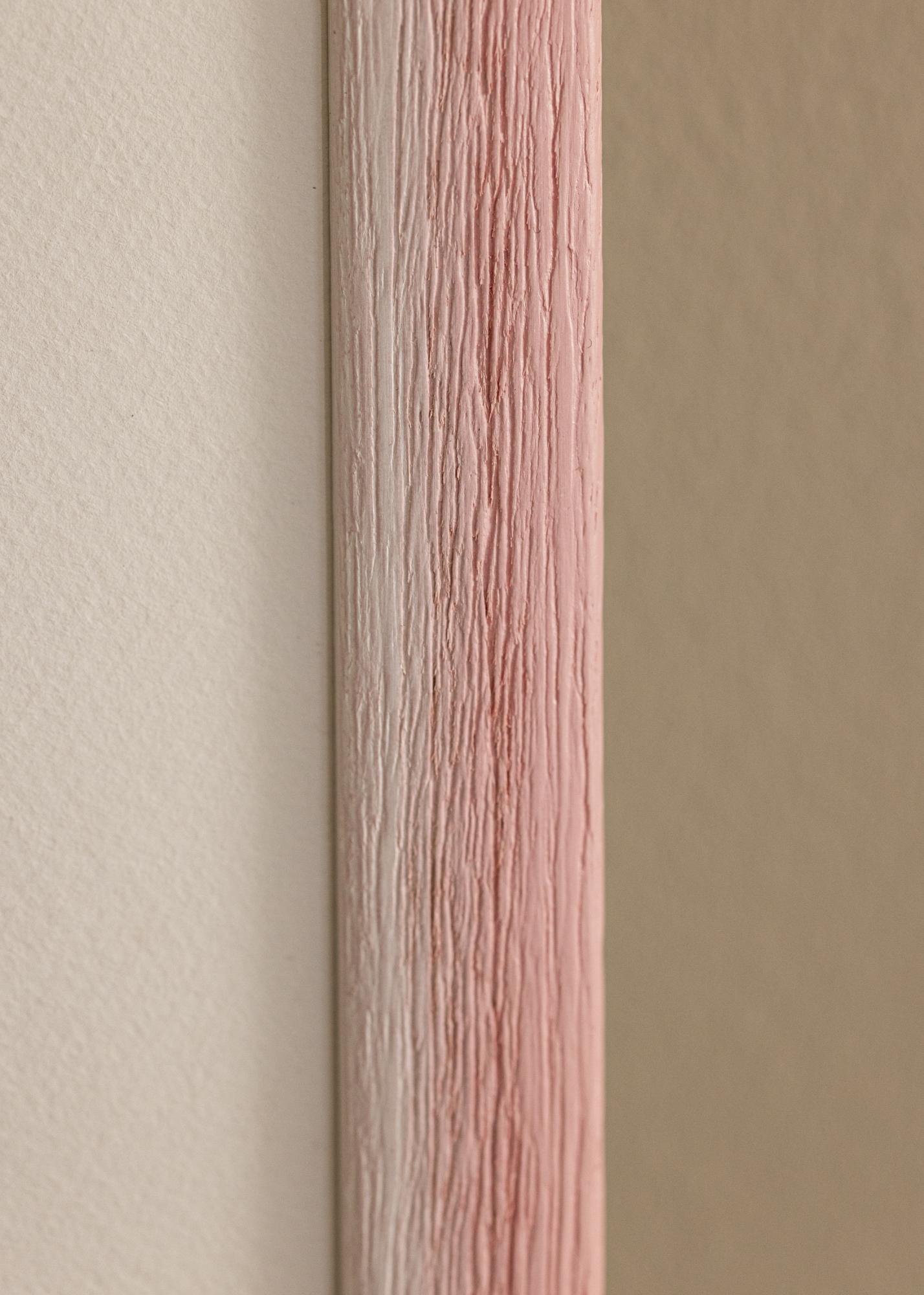 Тази рамка за картини има уникален преход на цветовете от светъл, почти бял тон до приглушен пастелно розов нюанс. Изразителната текстура на дървото с дълбоки жилки придава рустикален и естествен усет, което я прави отличен избор както за модерни, така и за традиционни интериори. Финото преминаване между цветовете създава ефект на ръчно боядисване, което придава на рамката живо изражение.