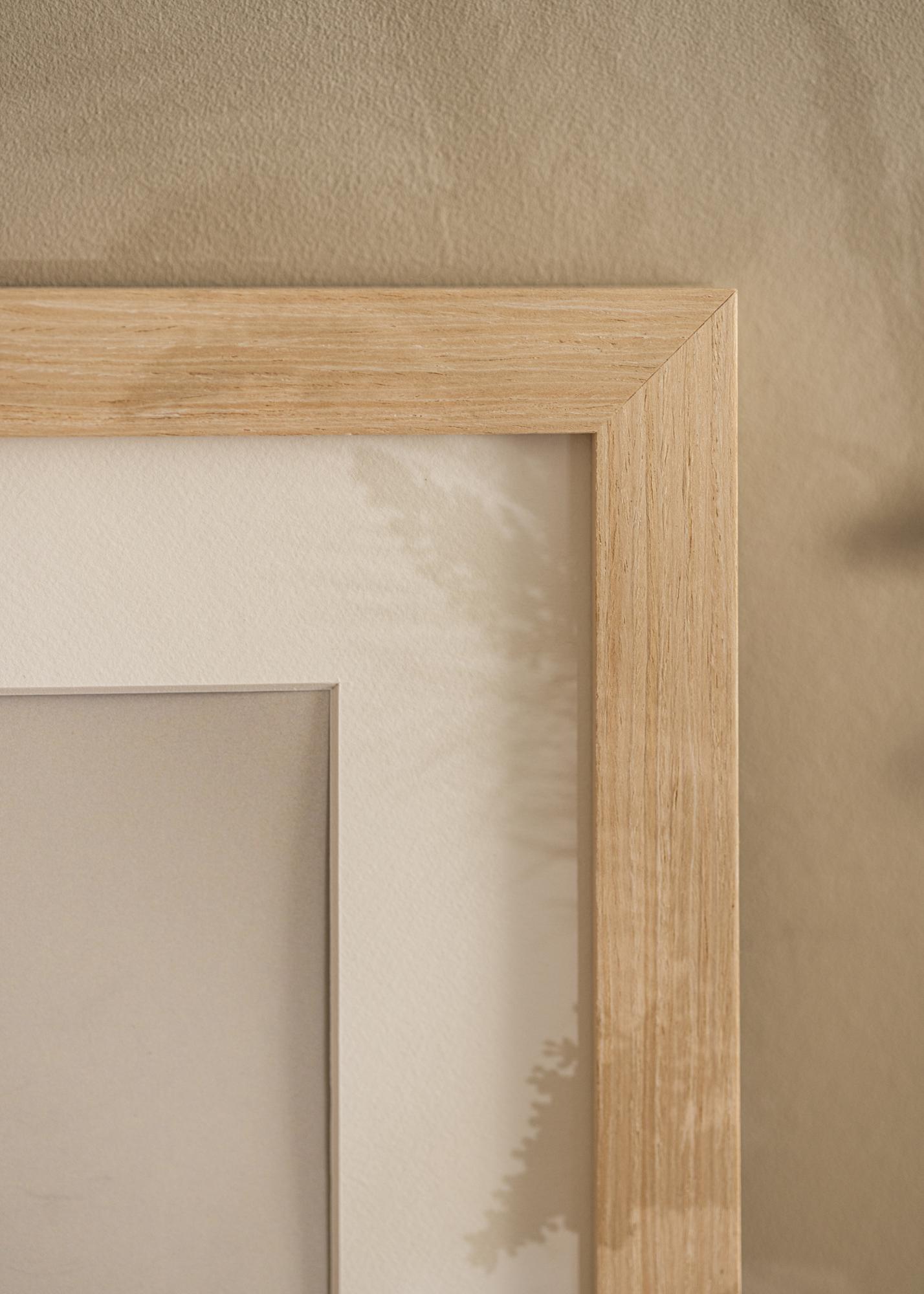 Рамката има широчина от 28 мм и дълбочина от 33 мм, което носи стабилно и надеждно усещане. Изработена от бор, тази рамка за картини е както издръжлива, така и стилна. Повърхността й е със сатенено матово покритие, което подчертава структурата без да отразява светлина, позволявайки на вашите изображения винаги да са в центъра на вниманието. Правият профил допринася за стилно и хармонично изражение.