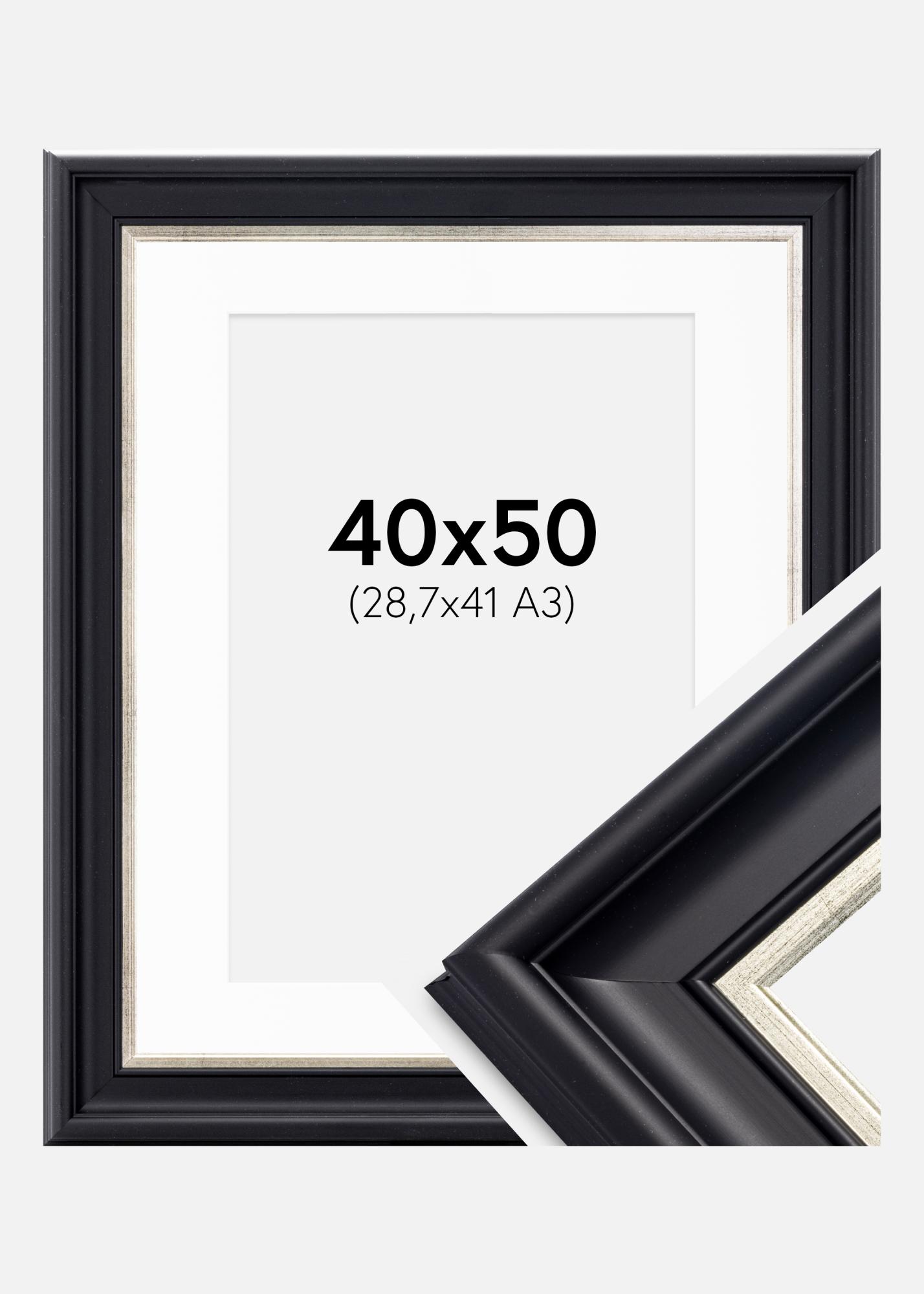 Рамка Dalarna Черно-сребърно 40x50 cm - Паспарту бяло 29,7x42 cm (A3)