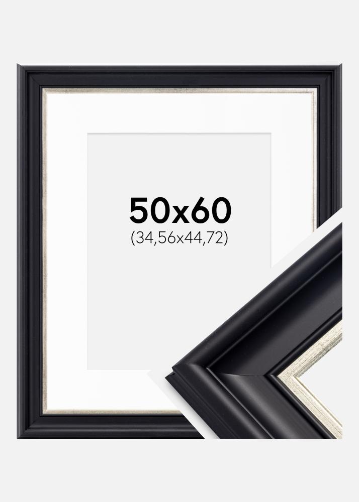 Рамка Dalarna Черно-сребърно 50x60 cm - Паспарту бяло 14x18 inches