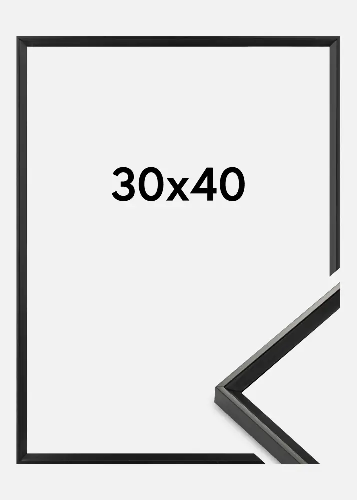 Това е черна рамка за картини в модерен дизайн с изчистен и матов профил на рамката, който е само 10 mm широк. Профилът на рамката има и ръб под 45° ъгъл, който се накланя навътре към изображението и придава на вашата снимка стилна и елегантна рамка. Ефектната рамка се подсилва допълнително от дълбочината на профила, която е 18 mm и също така осигурява на рамката солидно усещане.