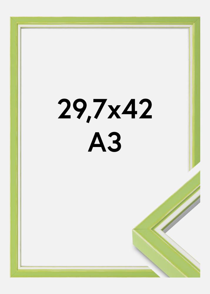Осигурете на стените си свеж и модерен акцент с нашата светлозелена и бяла рамка за картини с размер 29,7x42 см (A3). Тази стилна рамка за снимки е произведена в Нидерландия и се предлага с 20 мм широка лента, която елегантно обрамчва вашите снимки или произведения на изкуството.