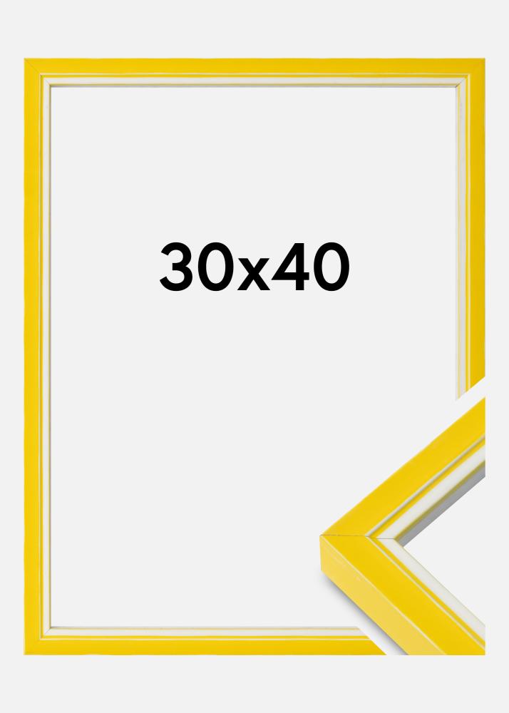 Дайте на вашите стени цветен акцент с тази впечатляваща фото рамка с размери 30x40 см. Със своя игрив съчетание на жълто и бяло, тази рамка за картини придава допълнително измерение на вашата любима фотография или произведение на изкуството. Произведена в Нидерландия, рамката предлага качество и издръжливост, които допълват стилния й дизайн.