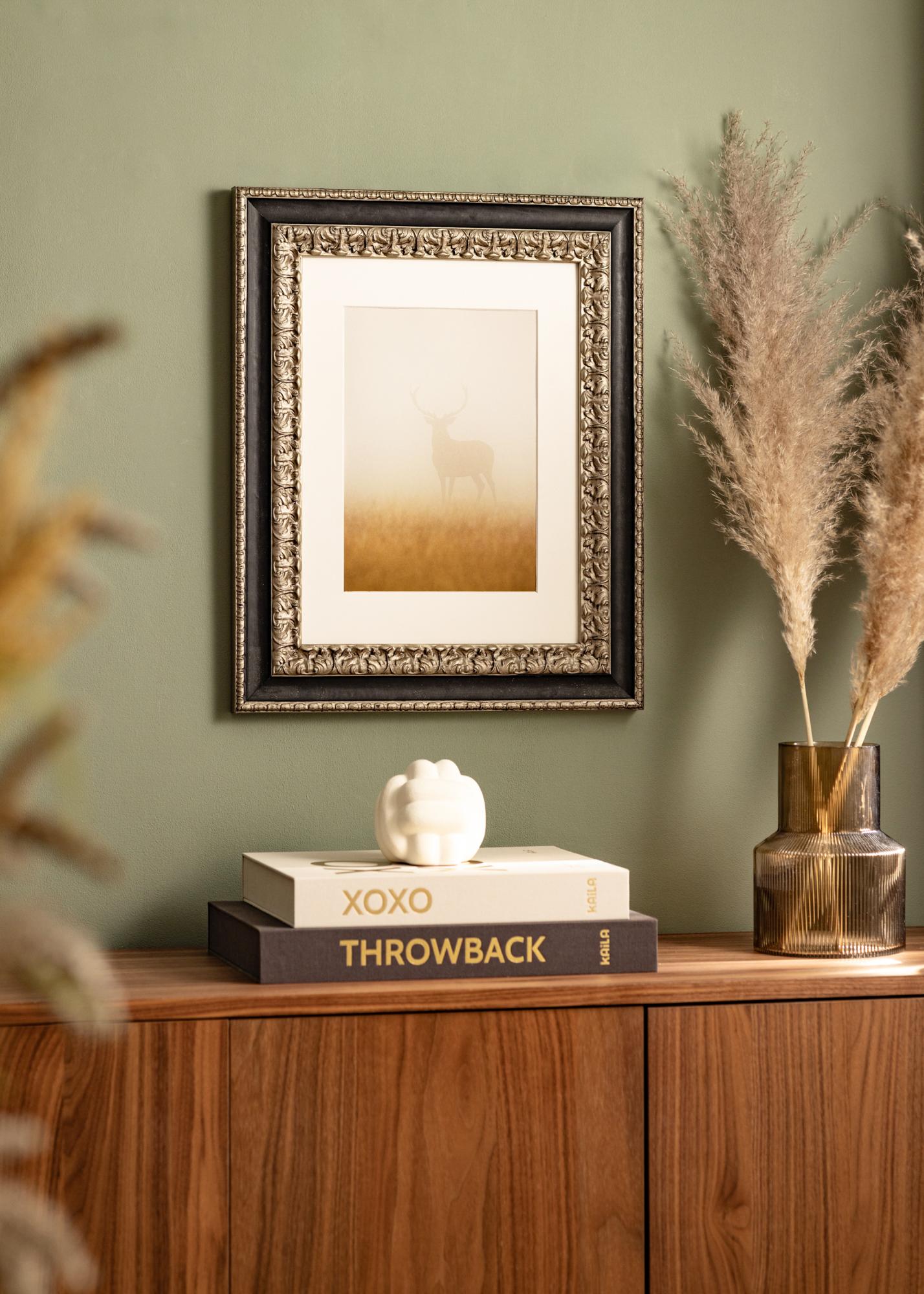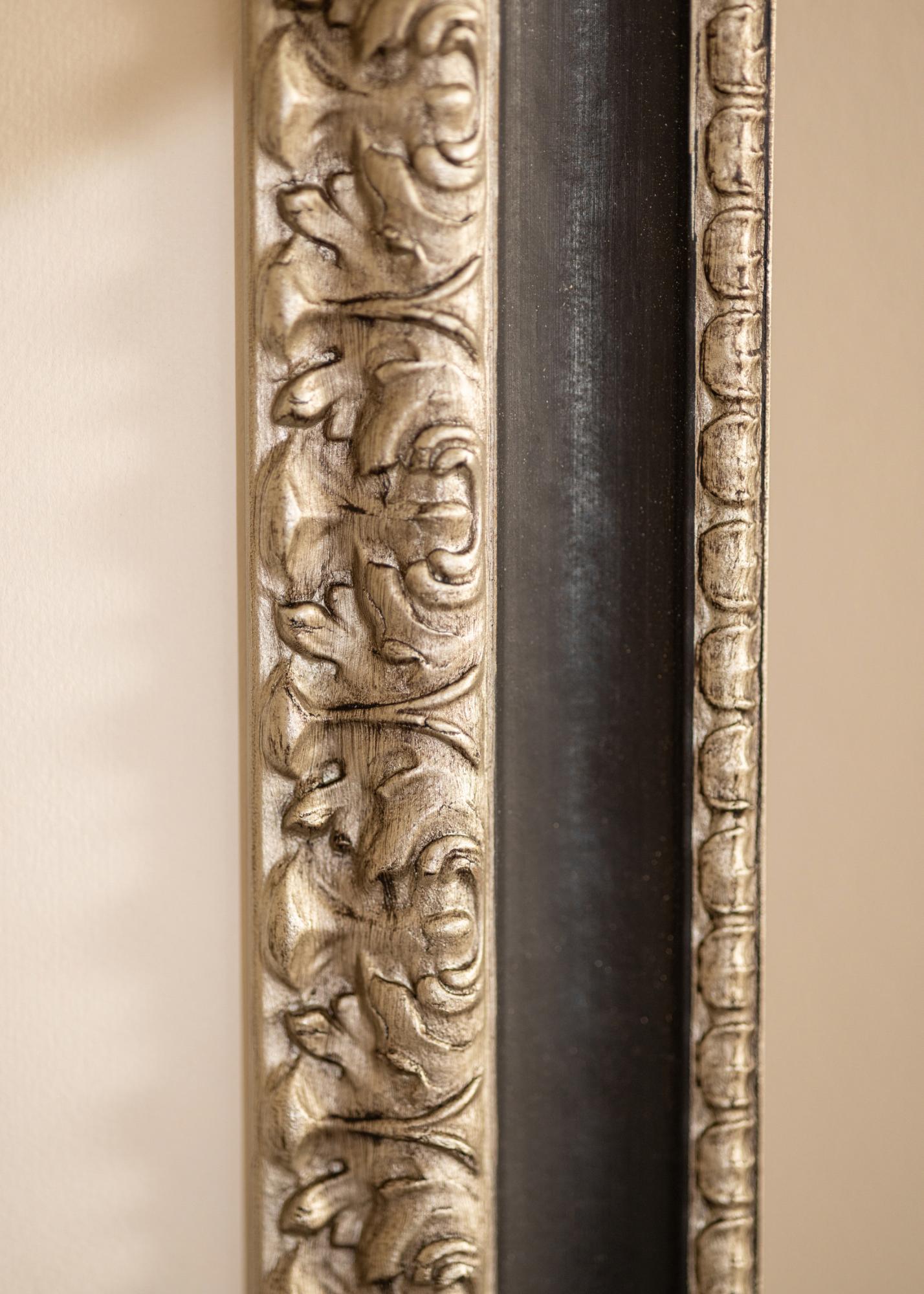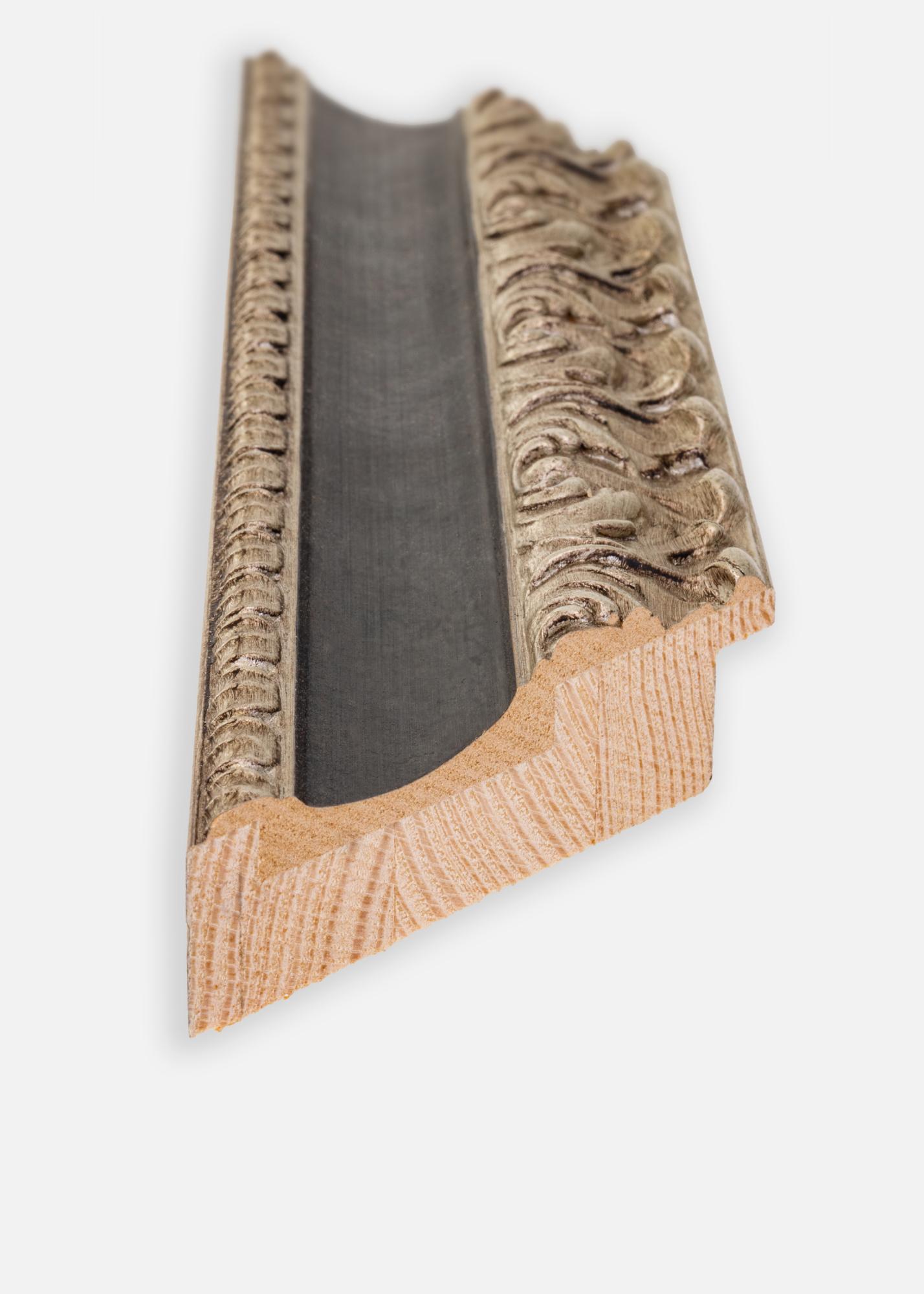 "Дротнингхолм Сребристо" е красива ретро рамка от Италия от съчленен бор, която е ръчно рисувана. Рамката има богато декориран сребърен профил с широка черна лента, която придава на рамката елегантно усещане. Перфектна за всички видове обрамчавания в ретро стил.