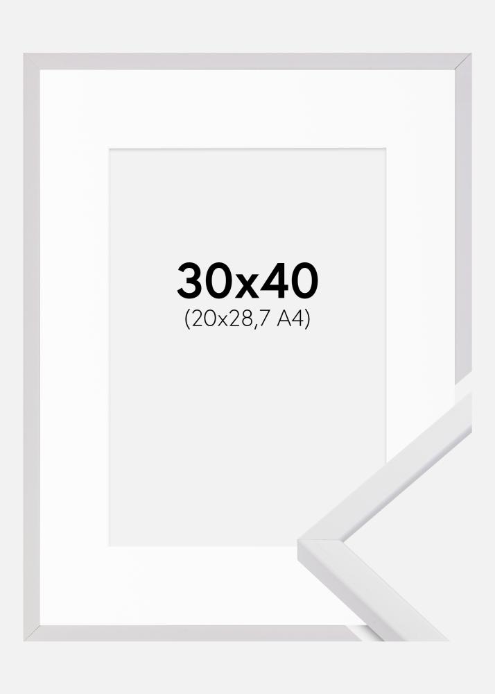 Рамка E-Line бяло 30x40 cm - Паспарту бяло 21x29,7 cm (A4)