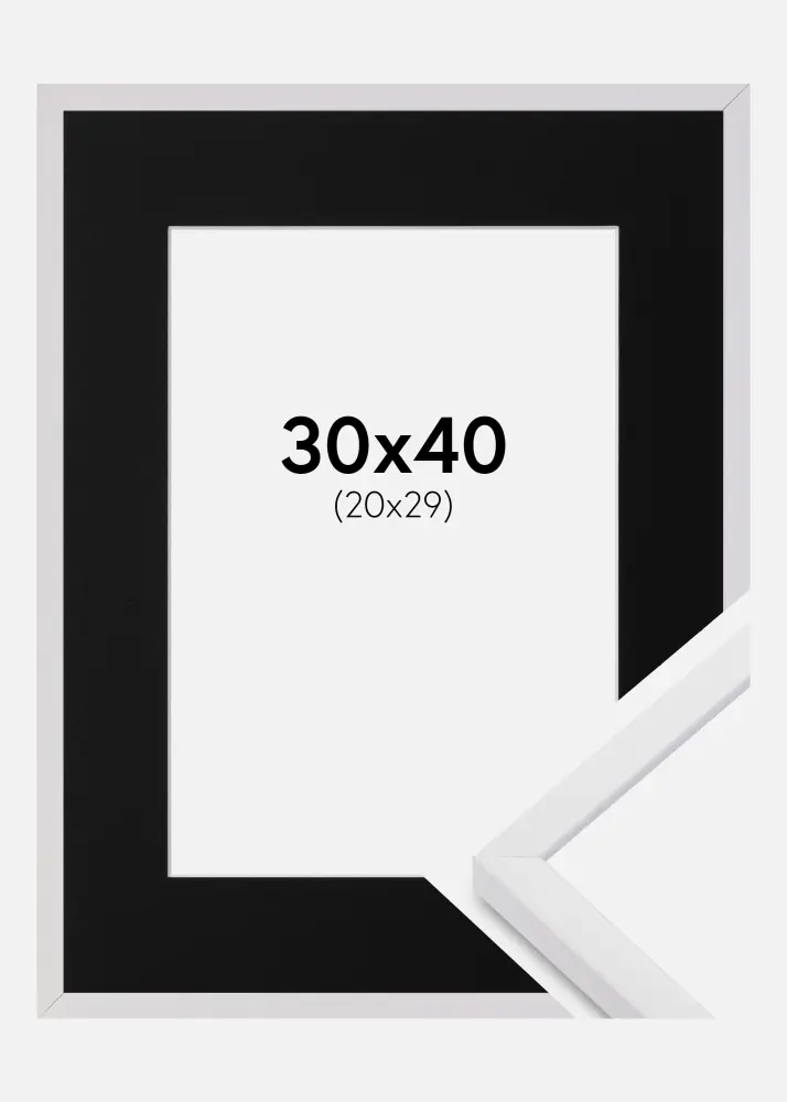 Рамка E-Line бяло 30x40 cm - Паспарту Черно 21x30 cm